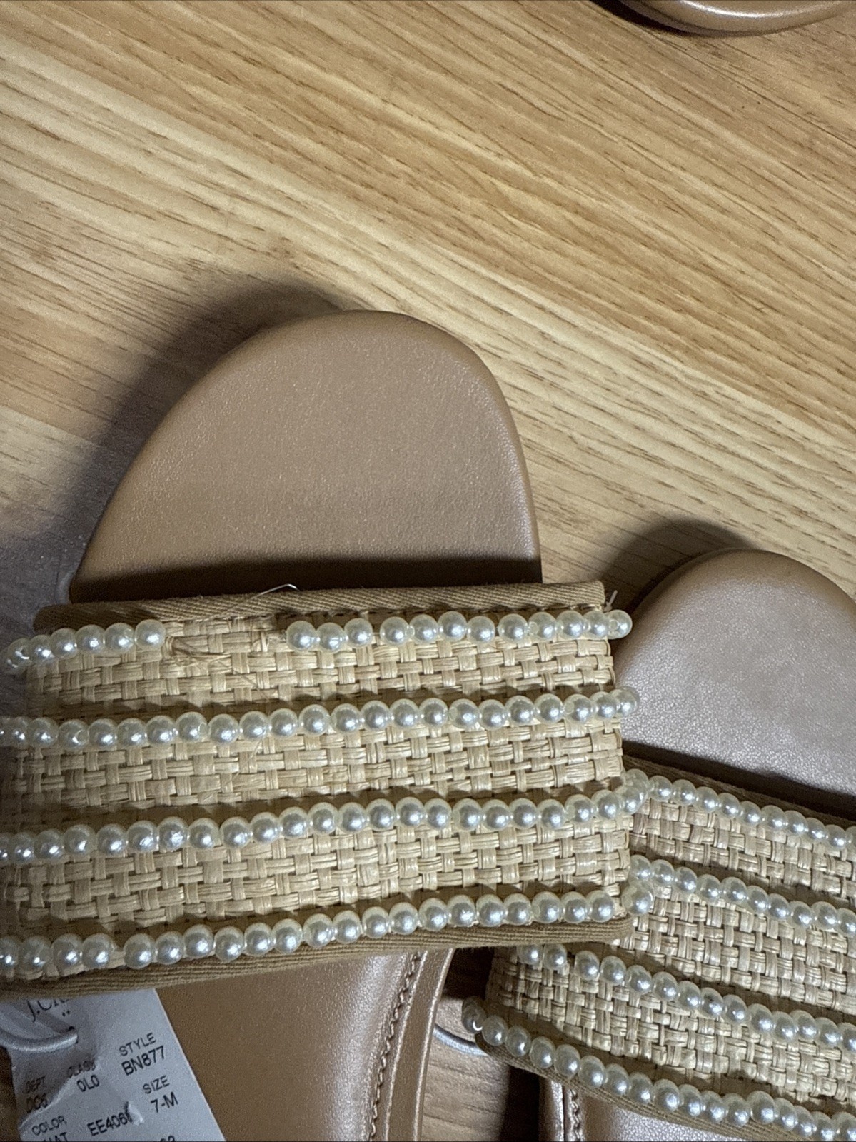 8 Pairs J. Crew Factory Pearl Slide Sandals Woven Raffia Slip On Flat NEW BN877