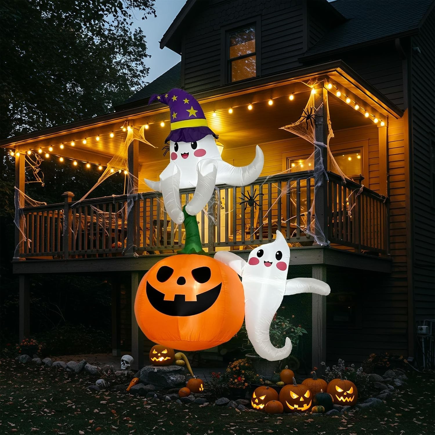 • Durable 7FT Halloween Inflatable - Ghosts Struggling with Pumpkin, LED Included