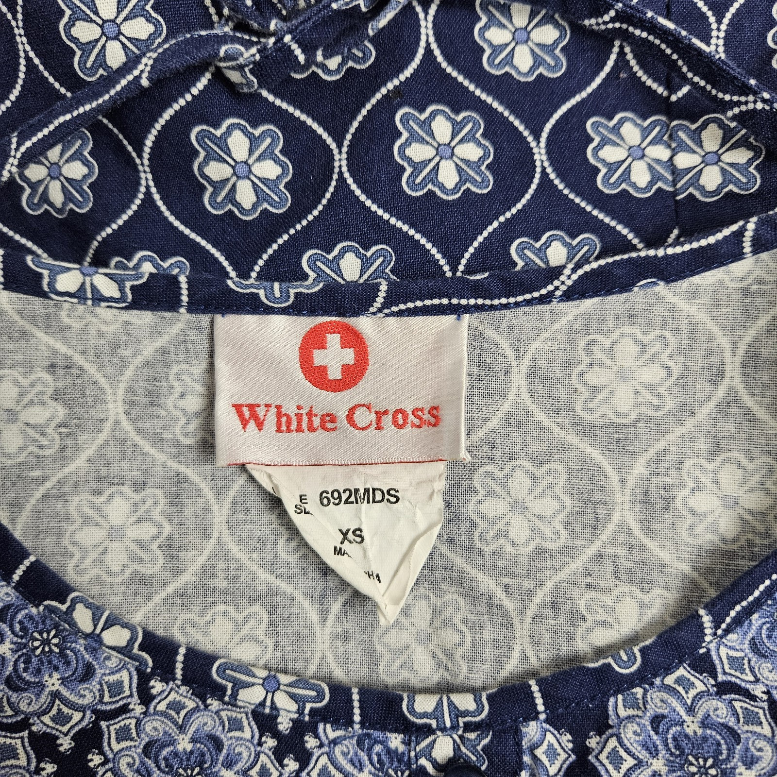 White Cross Blue Floral Scrub Top XS Nurses Aide Tech Doctor Vet Nurse Caregiver