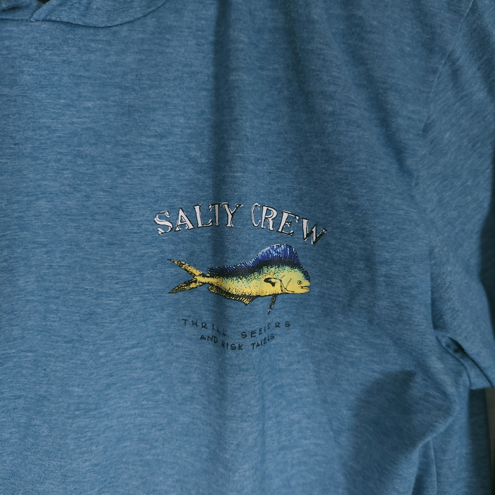 Salty Crew Mens Premium Technical Hoodie Size M Blue Fishing Surf Coastal