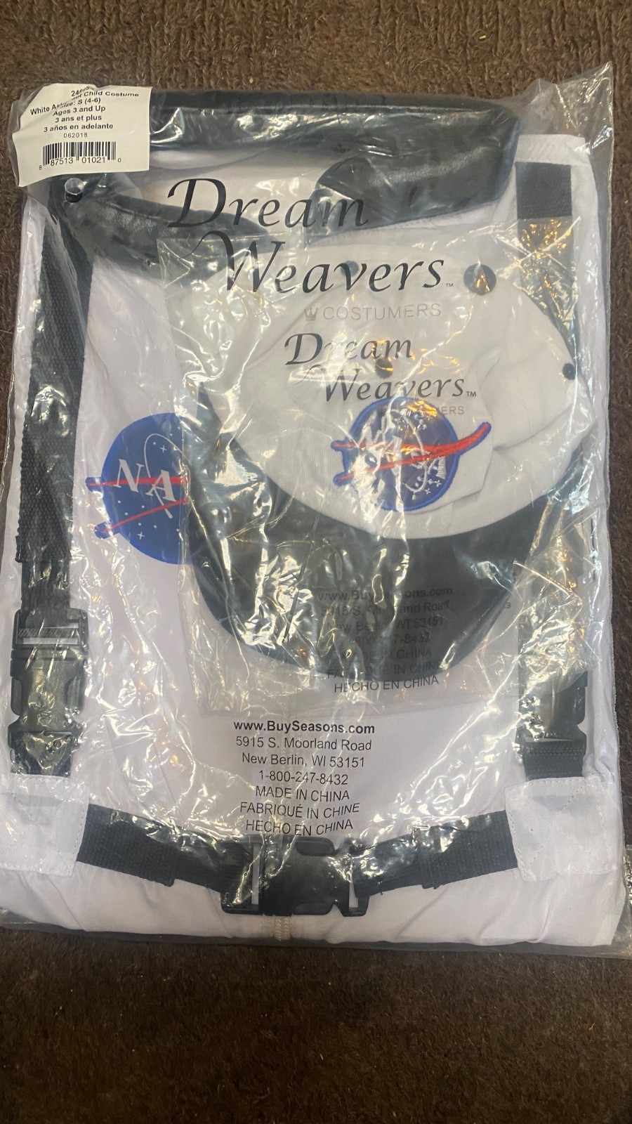 NASA Astronaut Suit Halloween Costume Toddler Size 4-6 Dream Weavers Hat
