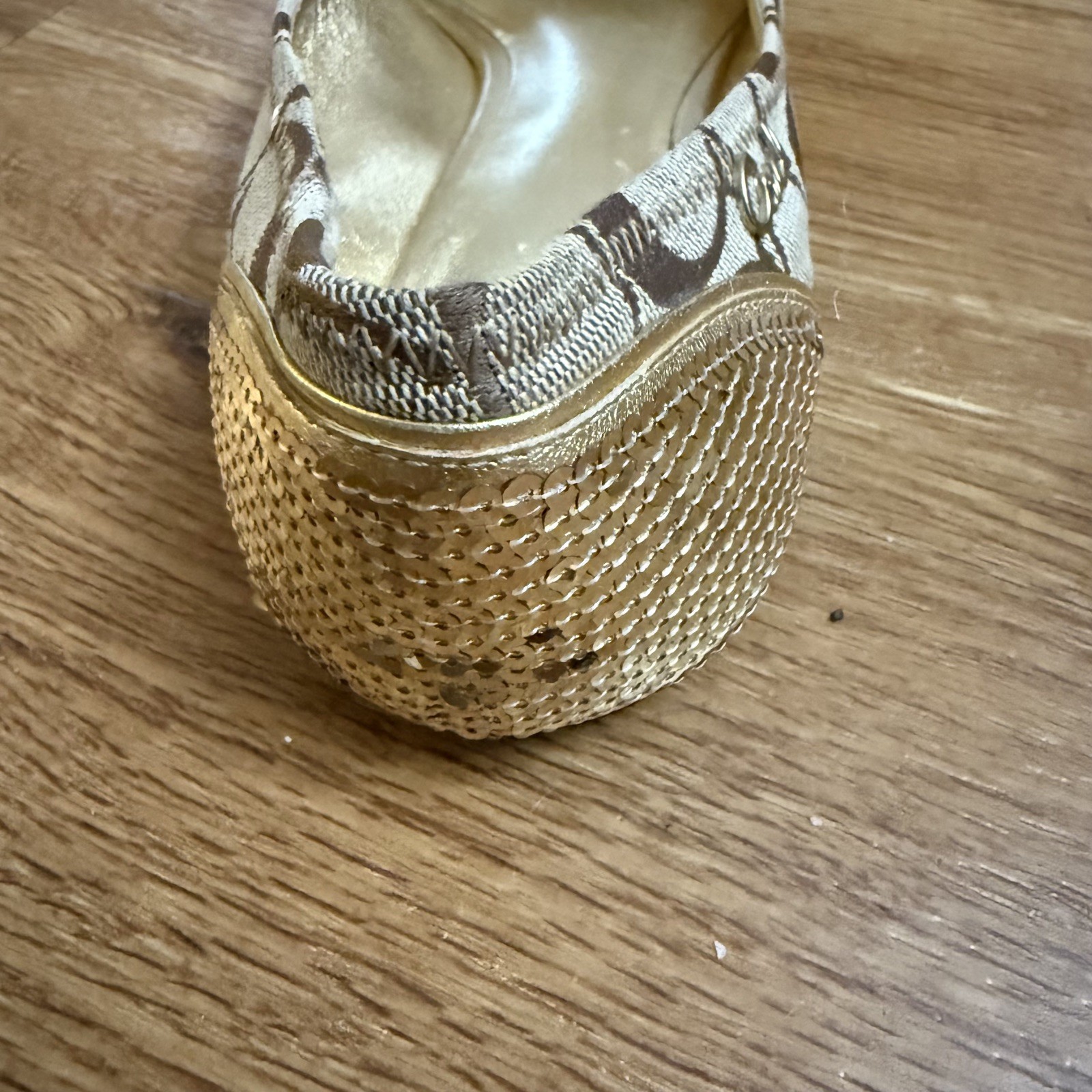 Coach Signature Shine Ballet Flats Women's 7.5B Sequin Gold Shoes Logo