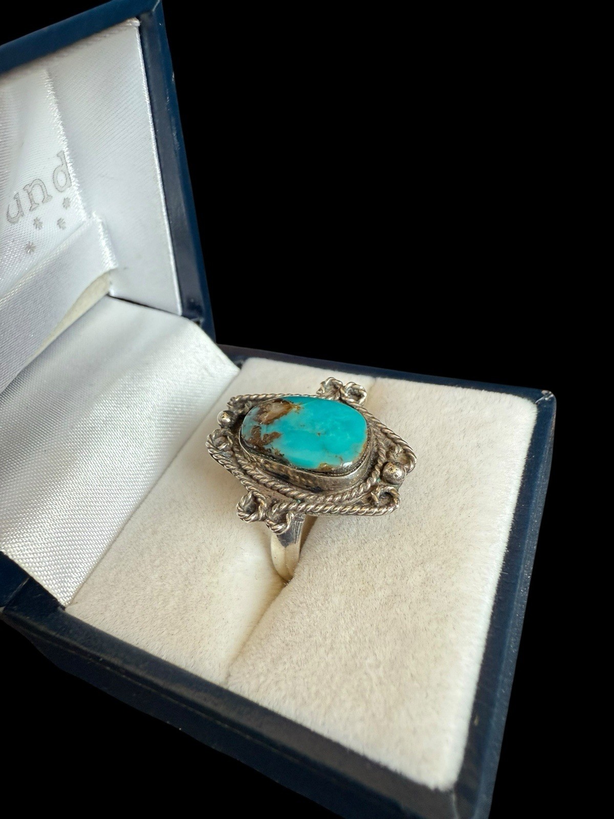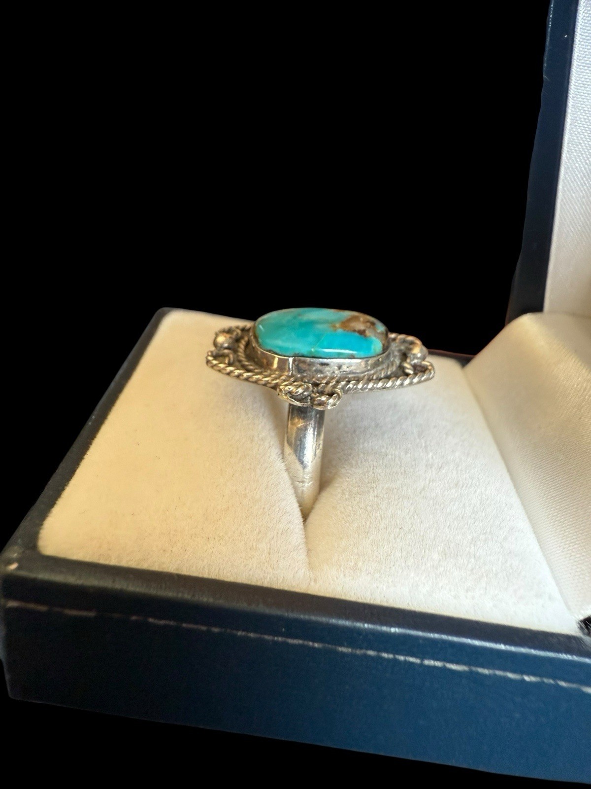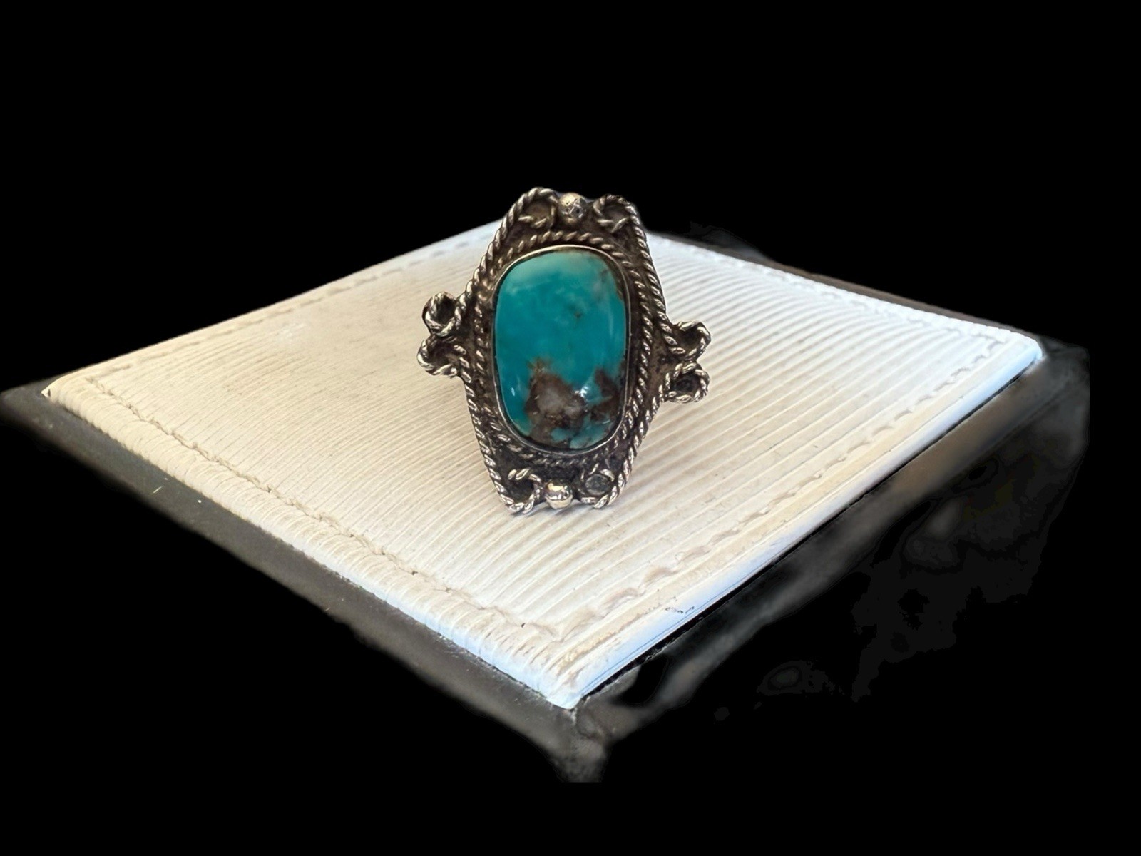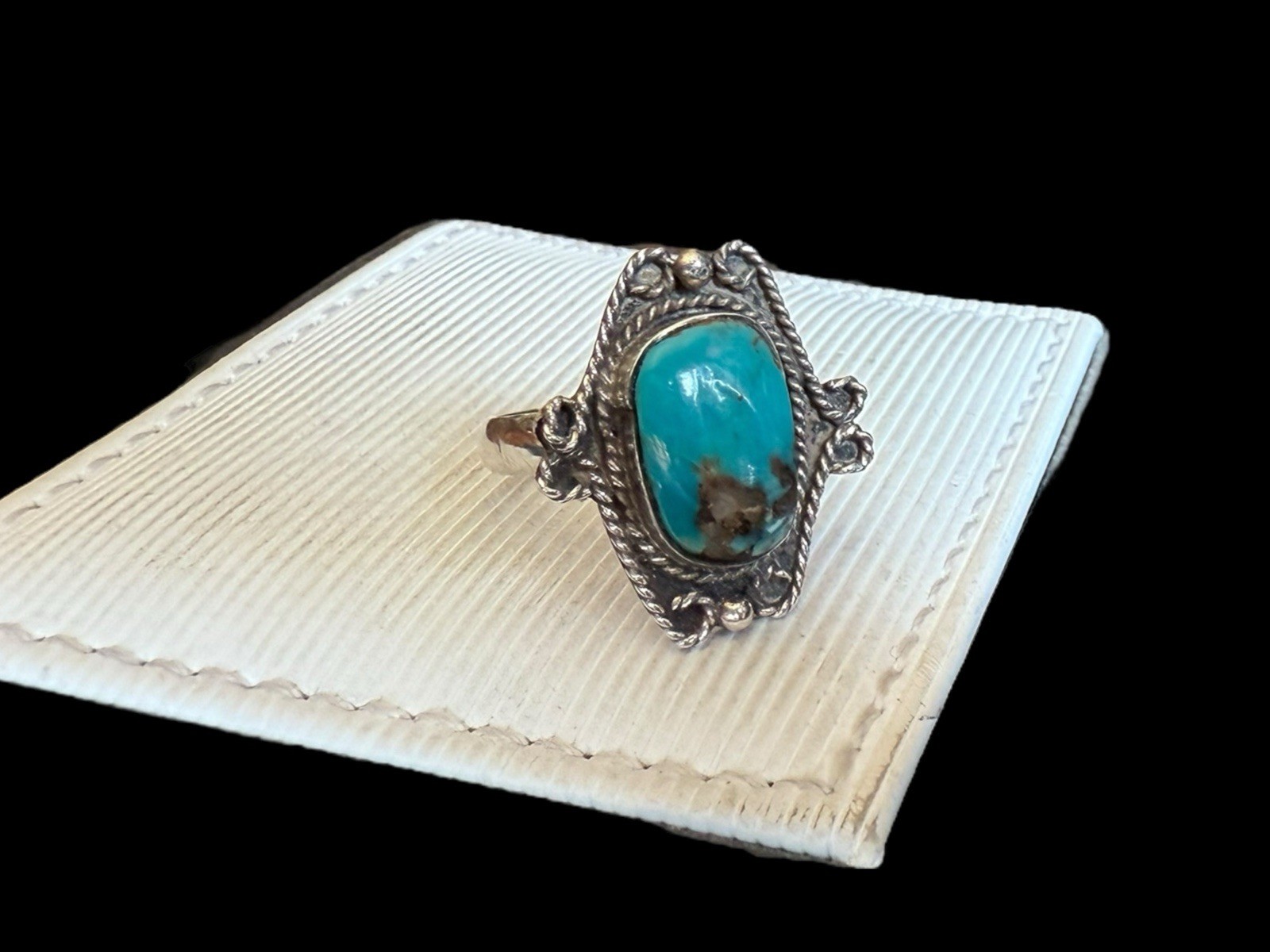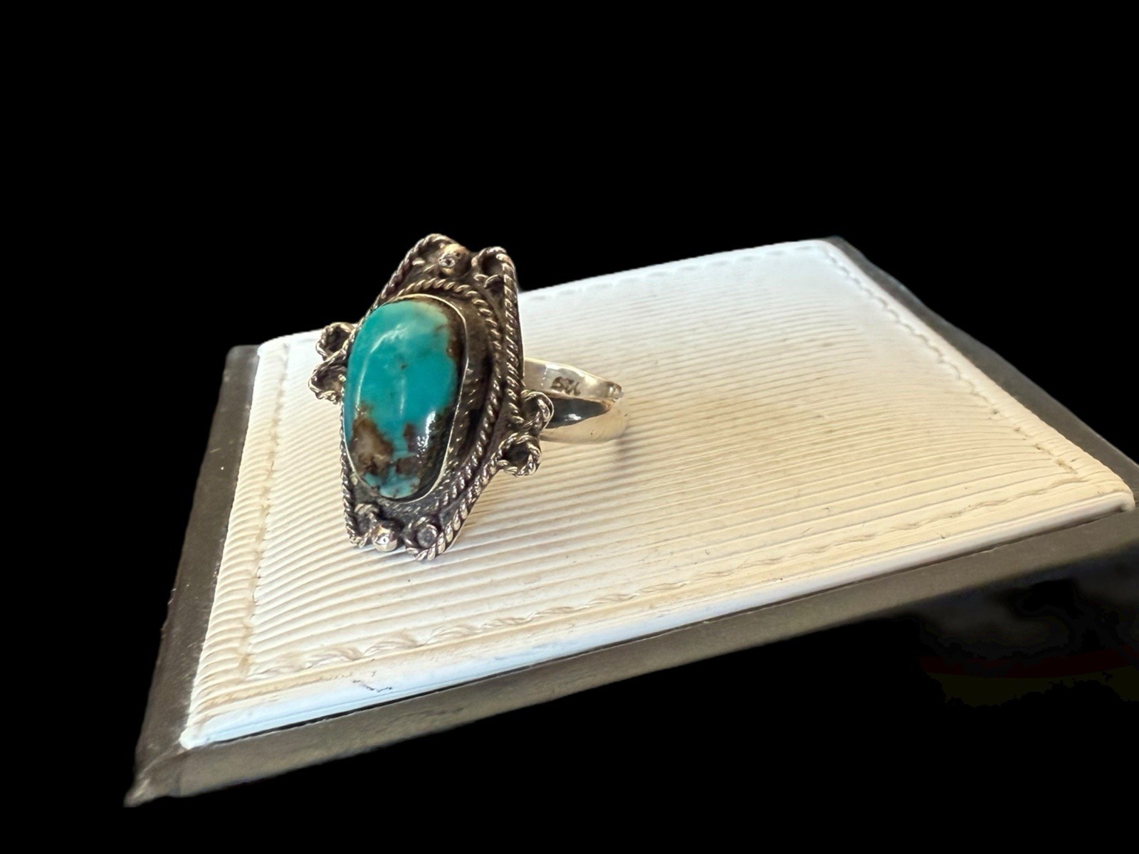как выглядит Vintage Southwest Sterling Silver Rope Turquoise Ring Size: 6 фото