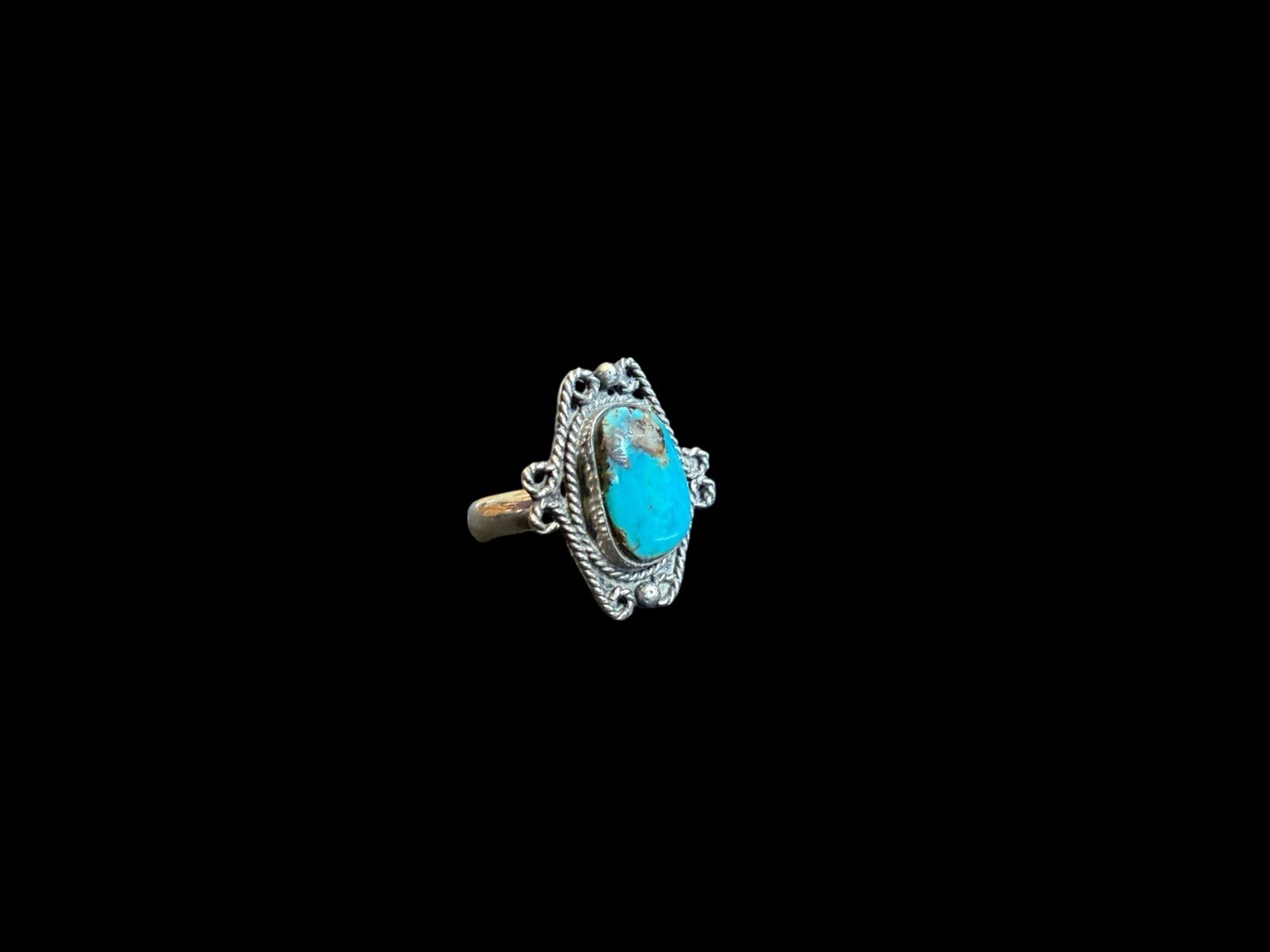 Vintage Southwest Sterling Silver Rope Turquoise Ring Size: 6