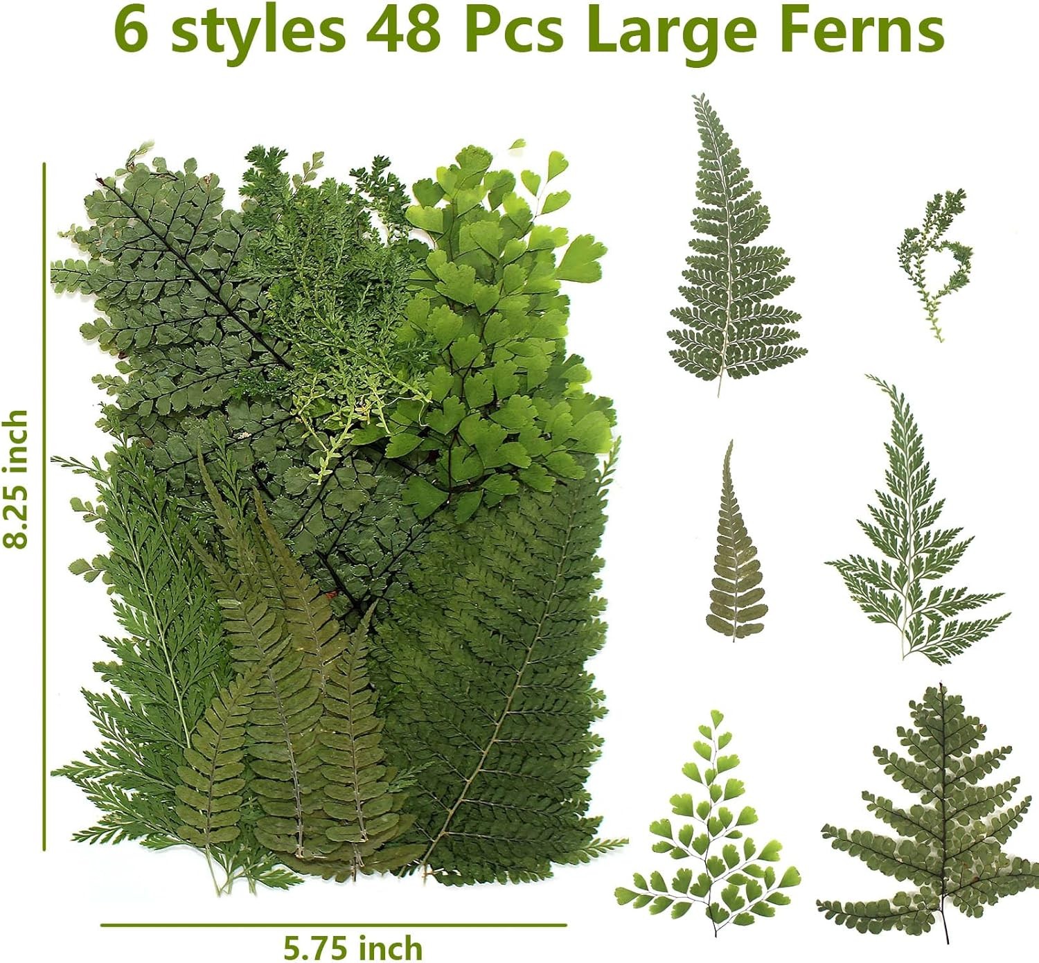 48 PCS Pressed Ferns Large Dried Pressed Leaves, Dried Flowers for Crafs