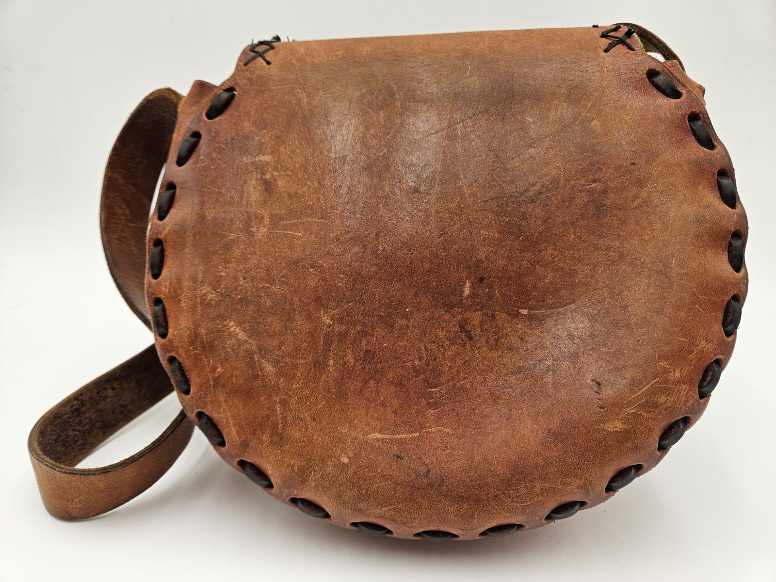 как выглядит Vintage Hand Tooled Leather Purse Native American Metal Embellishment READ фото