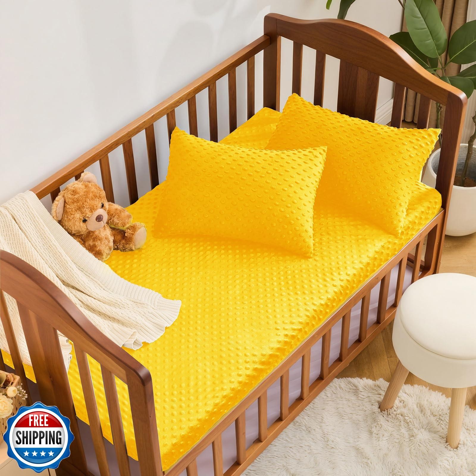 Entisn Baby Crib Sheets 2 Pack, 28 x 52 Inch Minky Dot Fitted Crib Mattress S