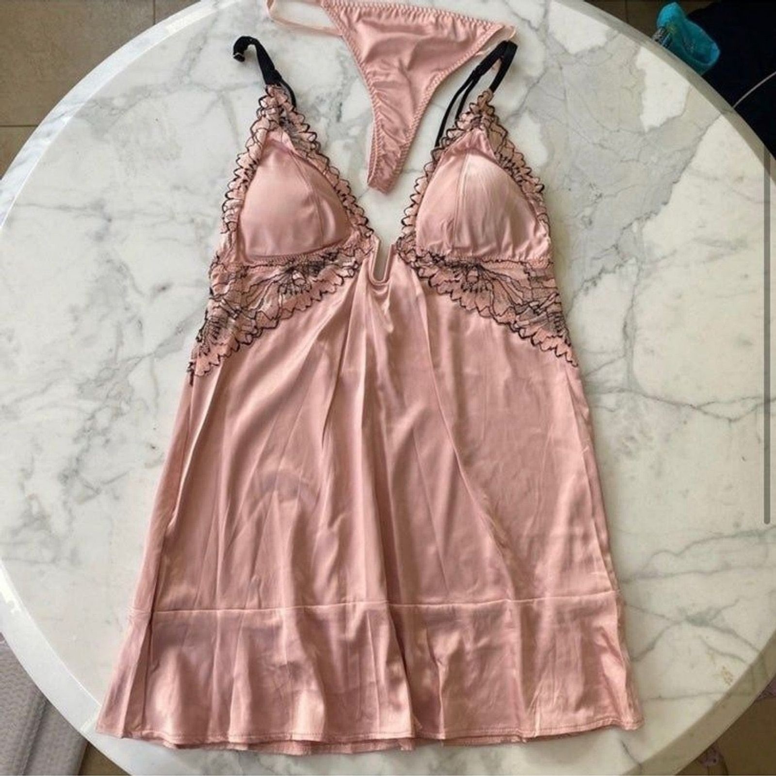 как выглядит AUDEN Lingerie Slip Dress Blush Pink and Black Floral Lace Size Small фото