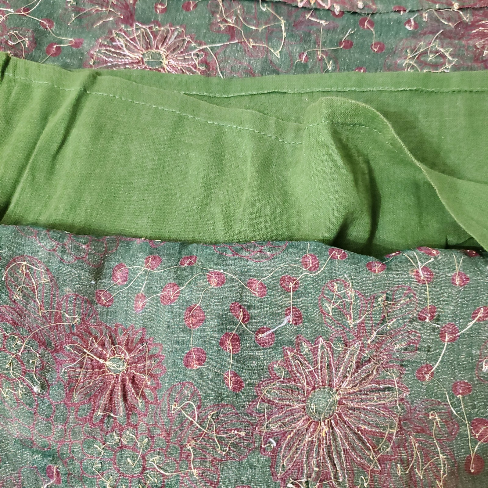 как выглядит Handmade Kurta Tunic Hand Beaded Floral Forest Green Ethnic Art Boho фото