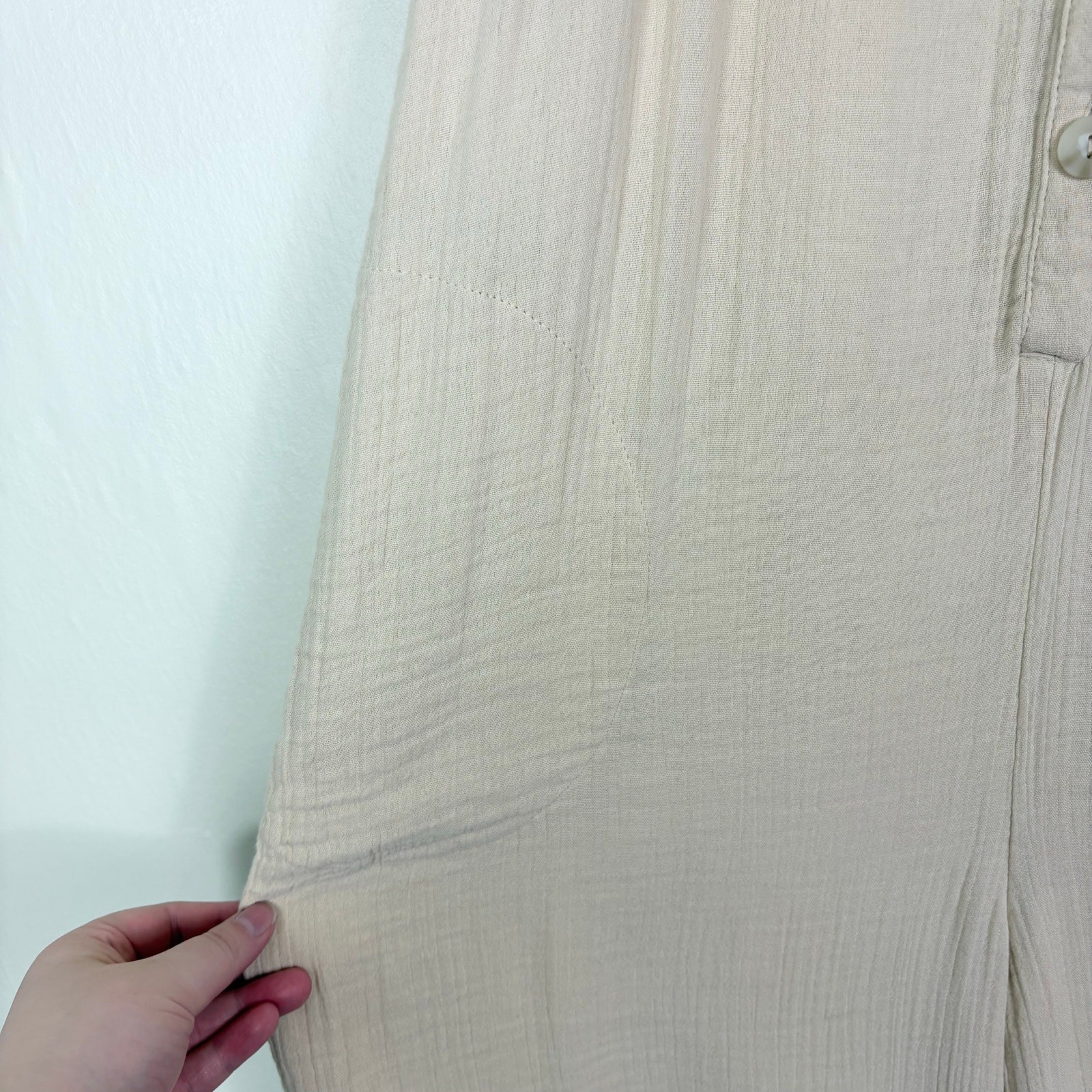 как выглядит Old Navy Neutral Ecru Cotton Blend Sleeveless Cropped Crinkled Wide Leg Jumpsuit фото
