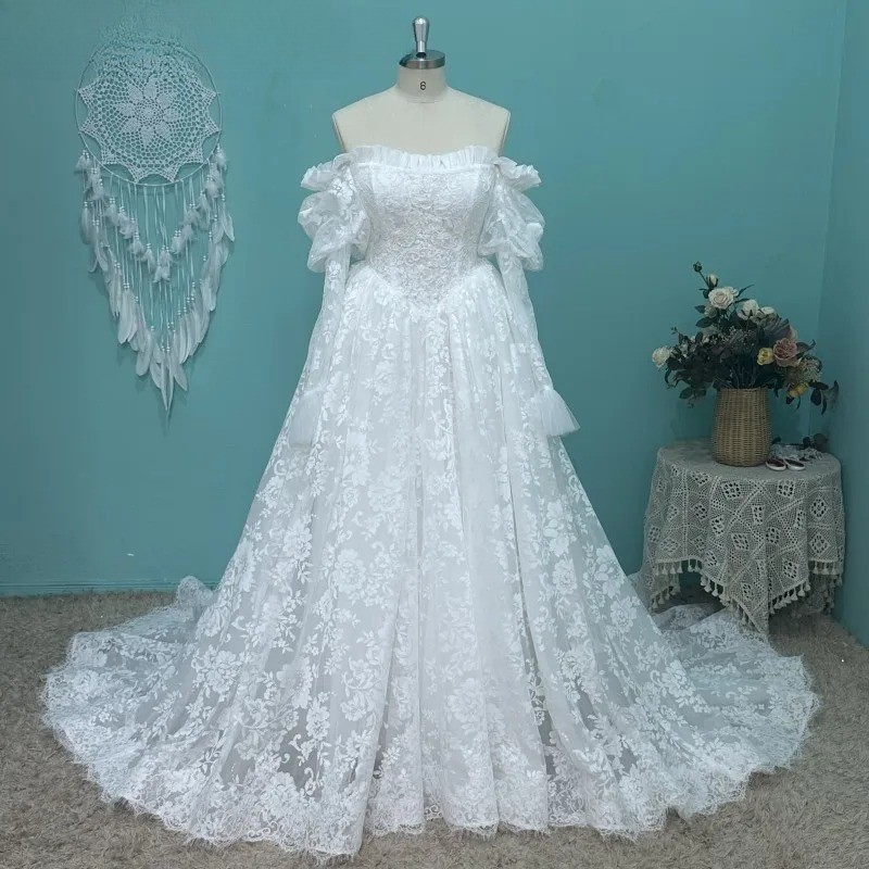 Luxury Lace A Line Wedding Dress Long Sleeve Boho Off The Shoulder Bridal Gowns