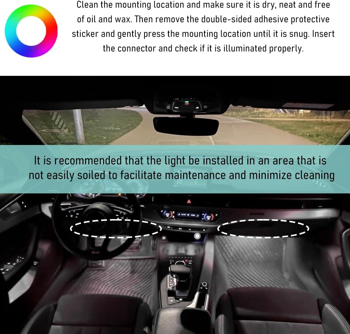 Car LED Strip Light, 24 LED Auto Interior Under Dash Atmosphere Lights with USB