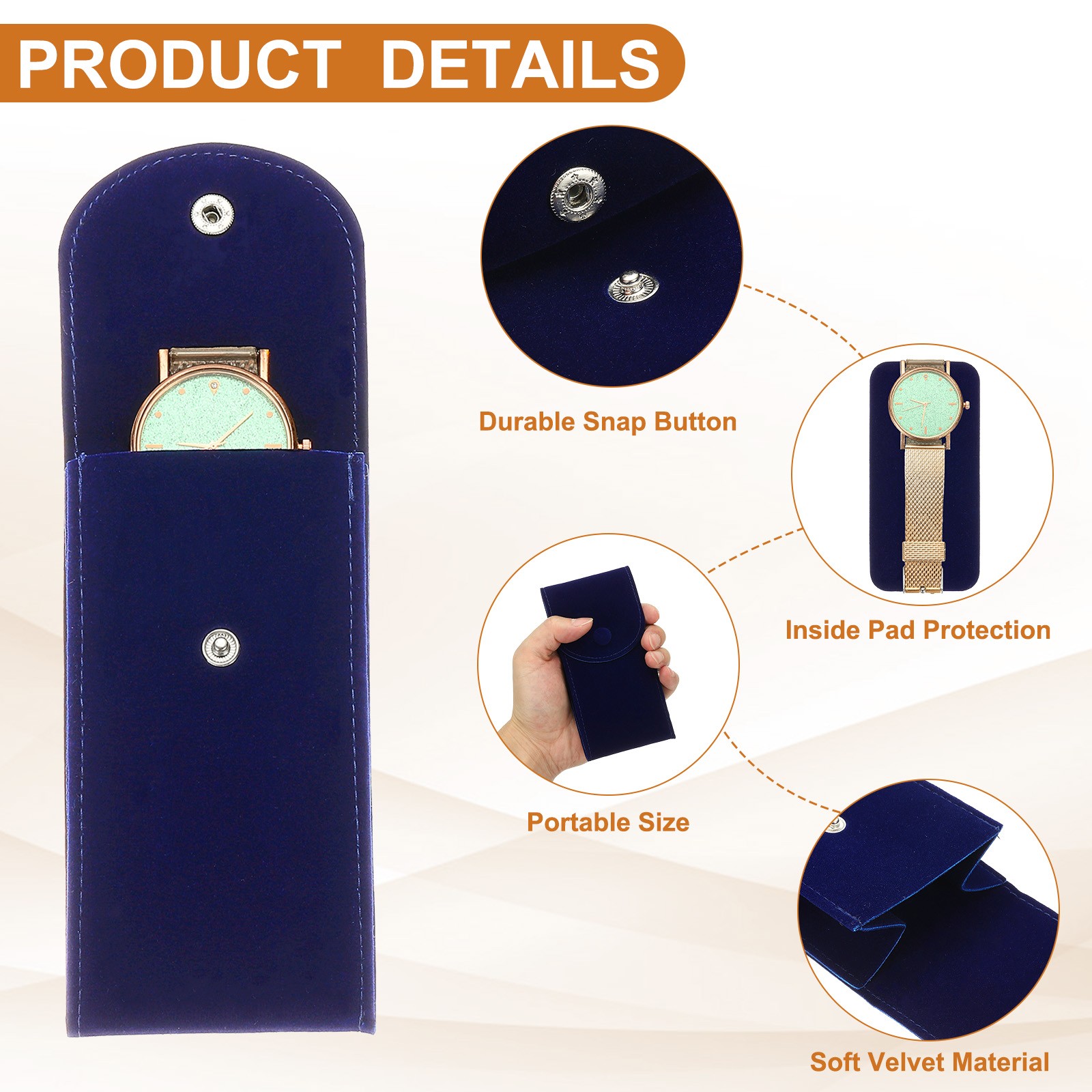 1 Pcs Velvet Watch Pouch, Portable Watch Travel Bag, Blue