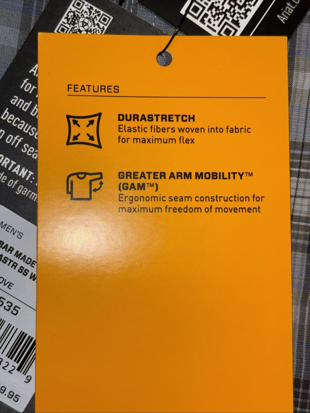 NEW Ariat Men's Button Up Durastar Wild Dove Gray Plaid Short Sleeve Shirt- XXL