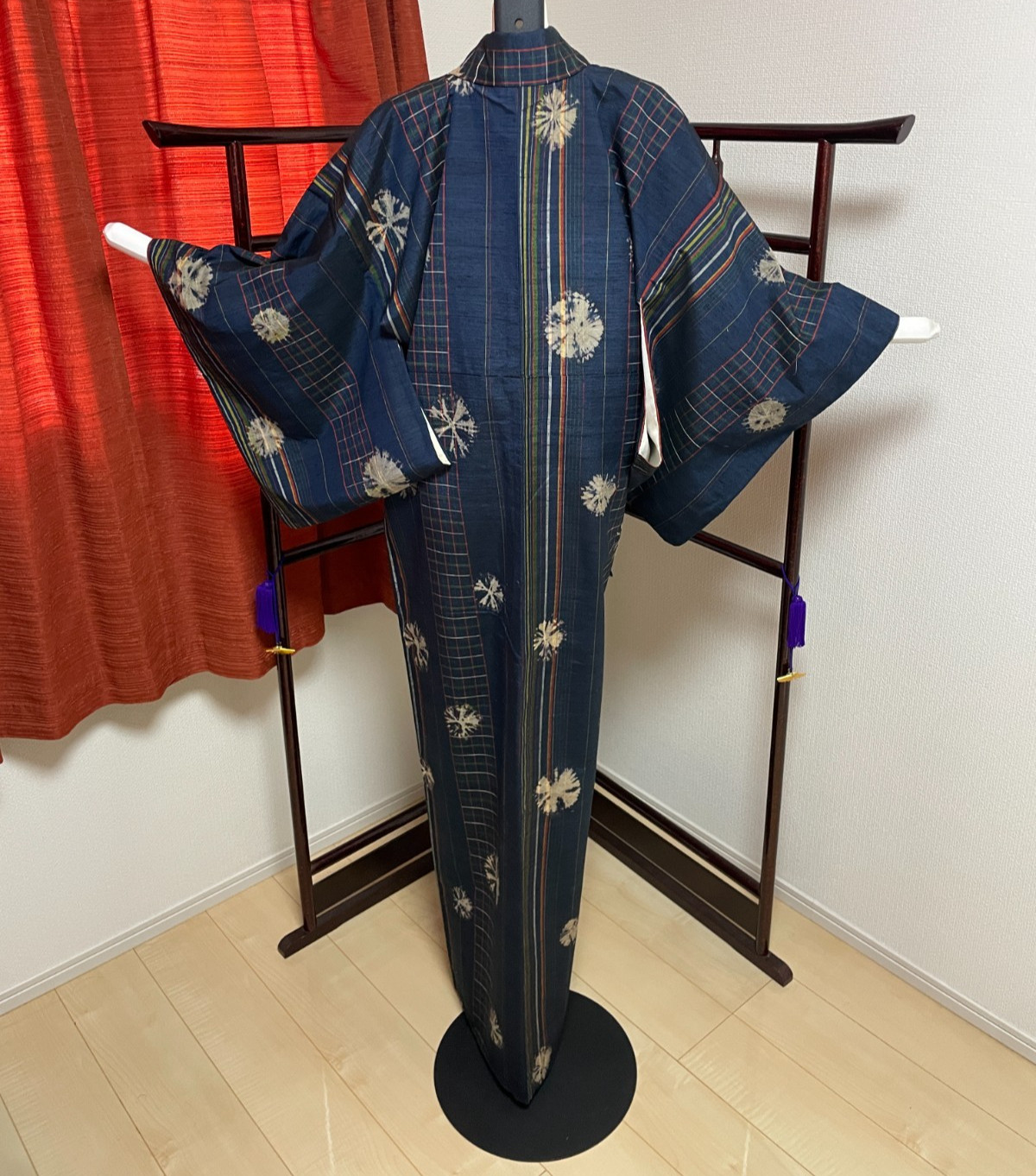как выглядит Japanese Kimono Komon M Colored Striped Plaid with Floral Tie dye Pre-owned фото