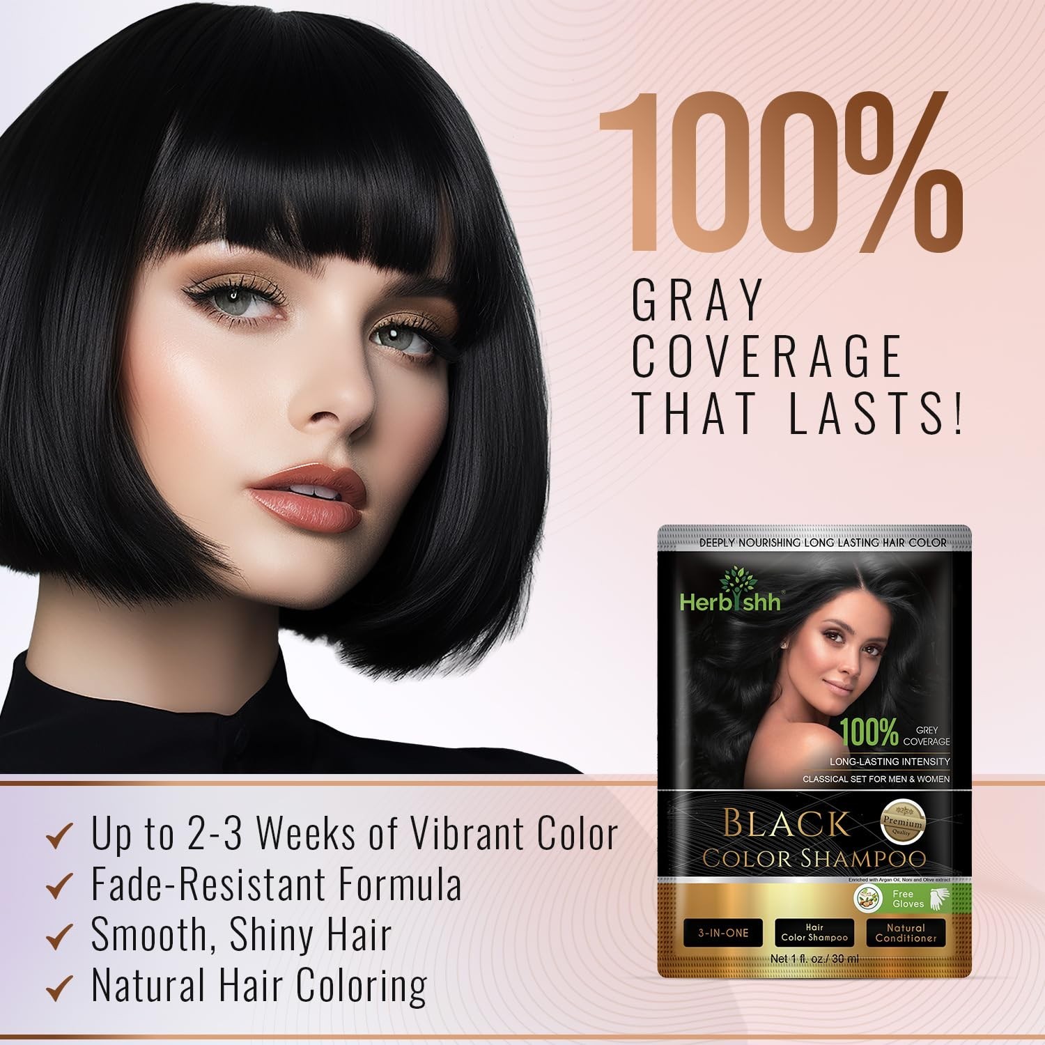 Herbishh Natural Hair Dye Shampoo with Argan Mask - Long-Lasting Co... Fast Ship