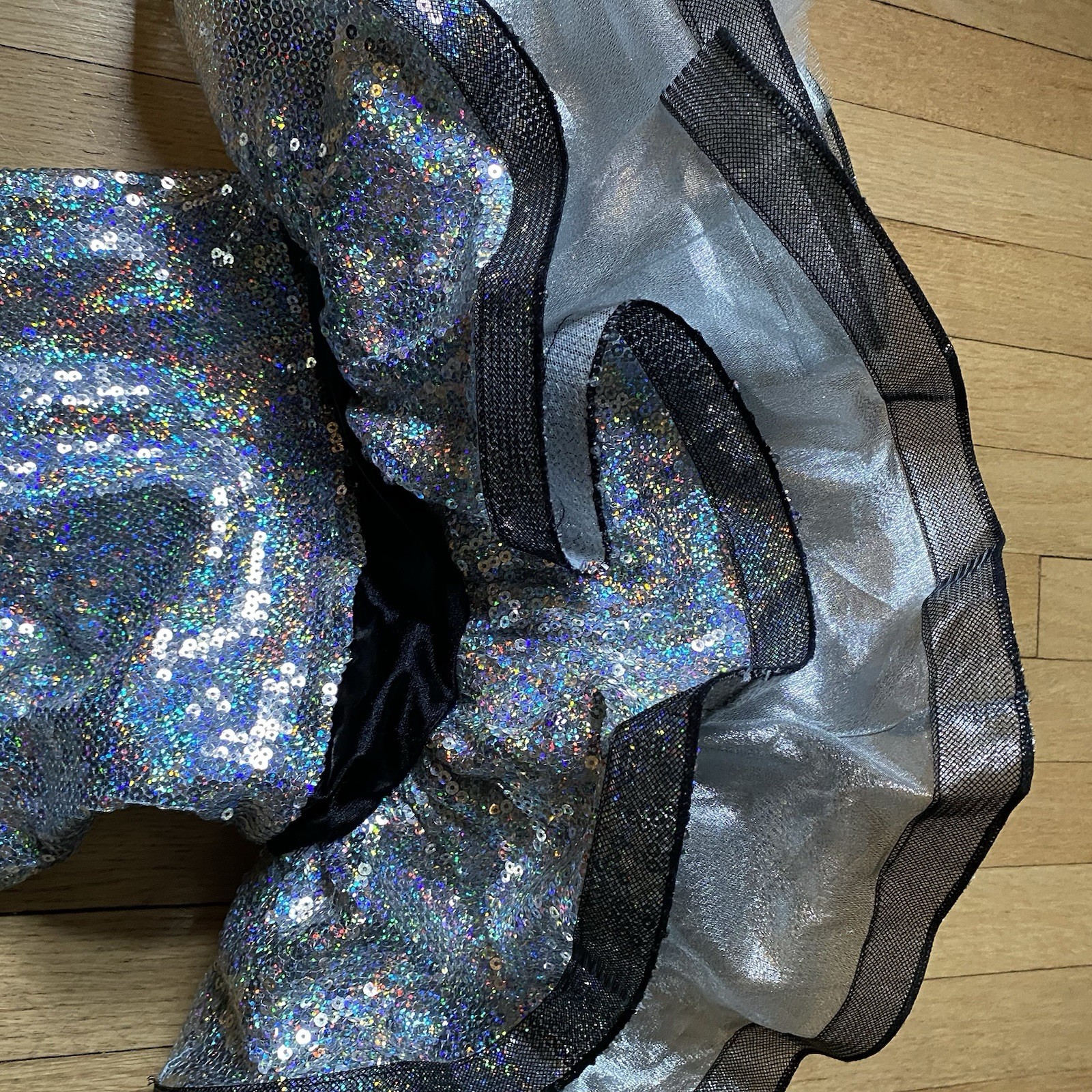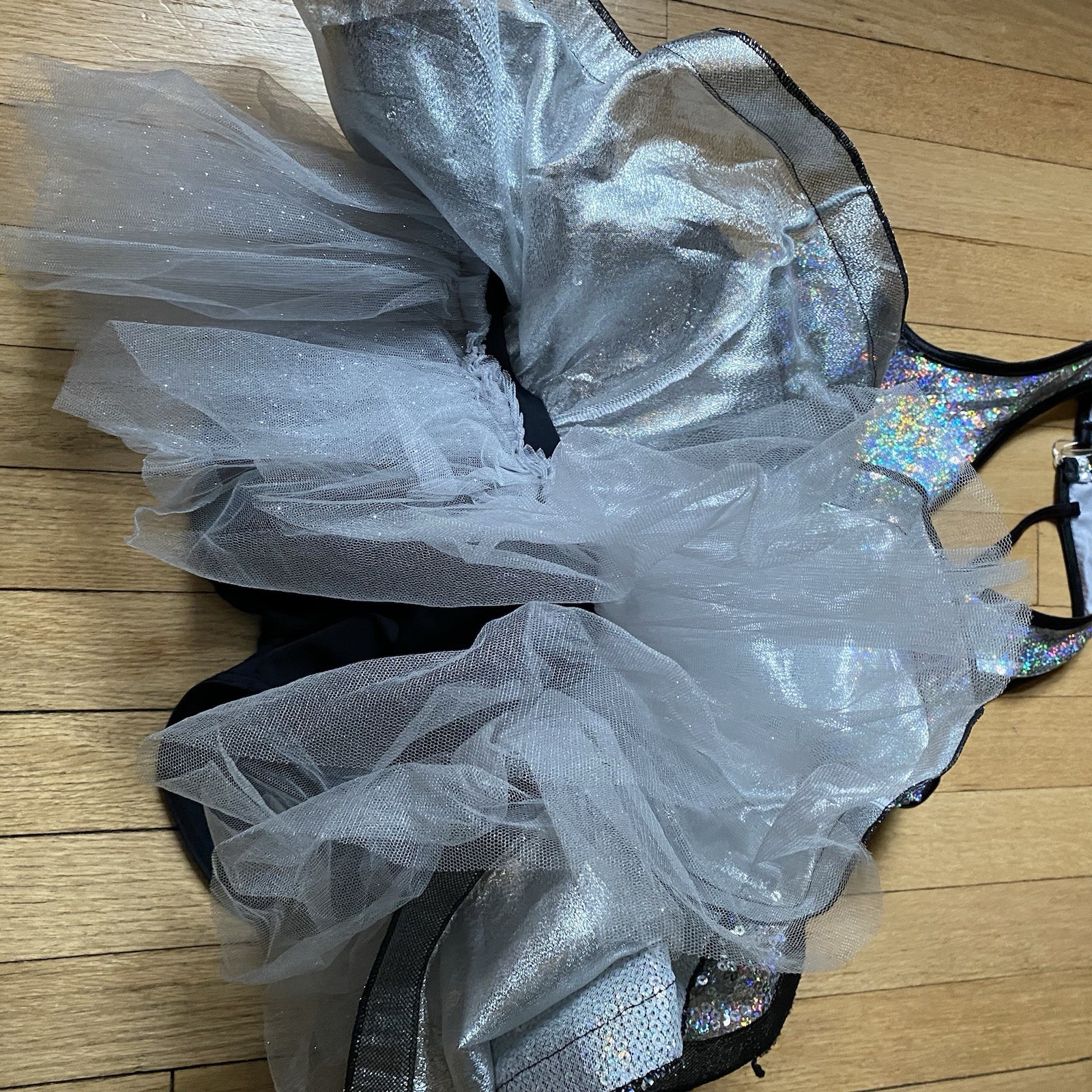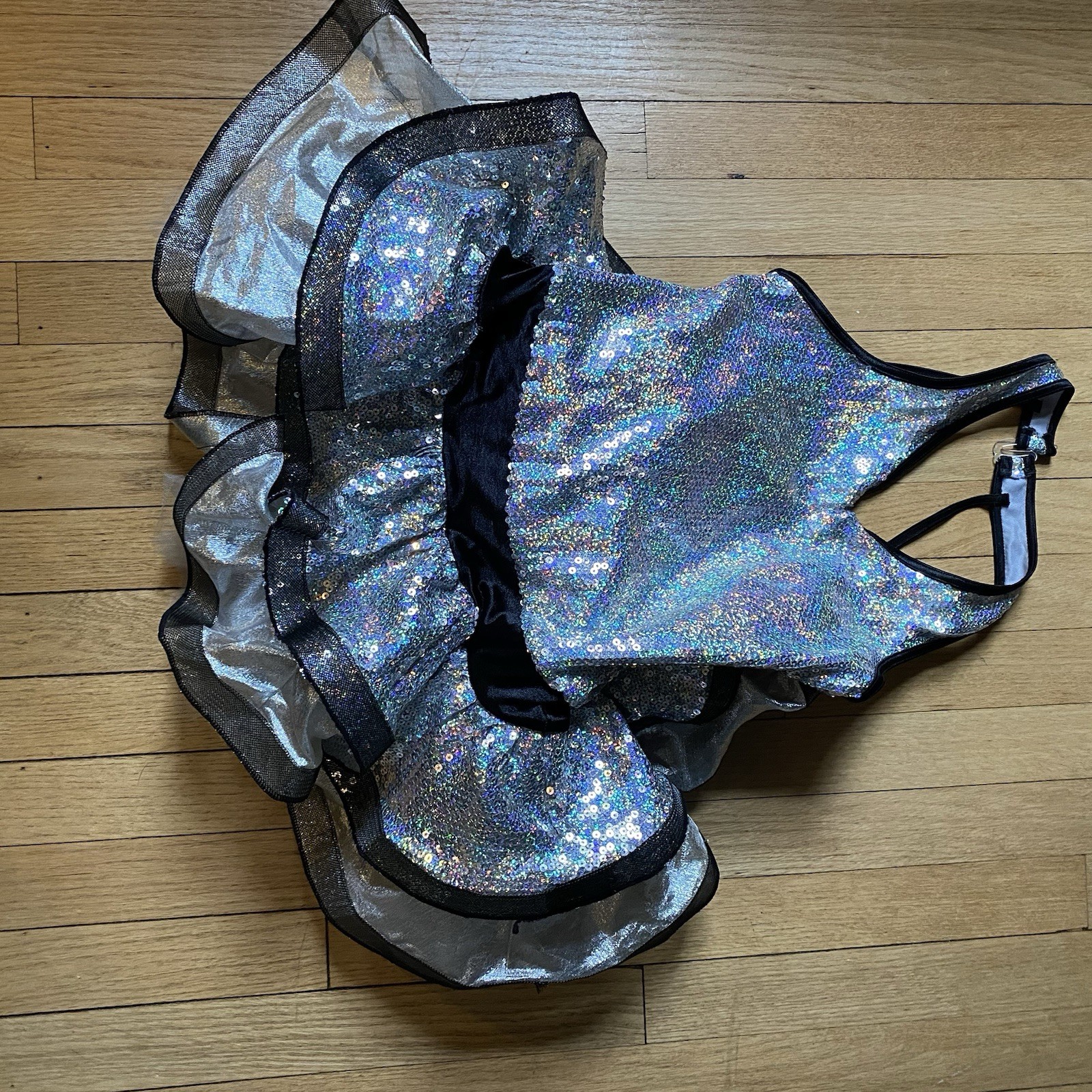 как выглядит Weissman Dance Costume Girls 14 LC Worth It Silver Hologram Sequin Tutu Shorts фото