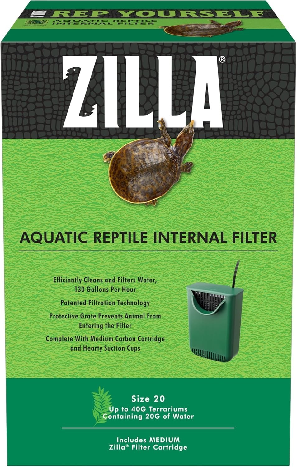 Zilla Aquatic Internal Water Filter for Reptiles, Up to 20 Gallons, Easy Setup