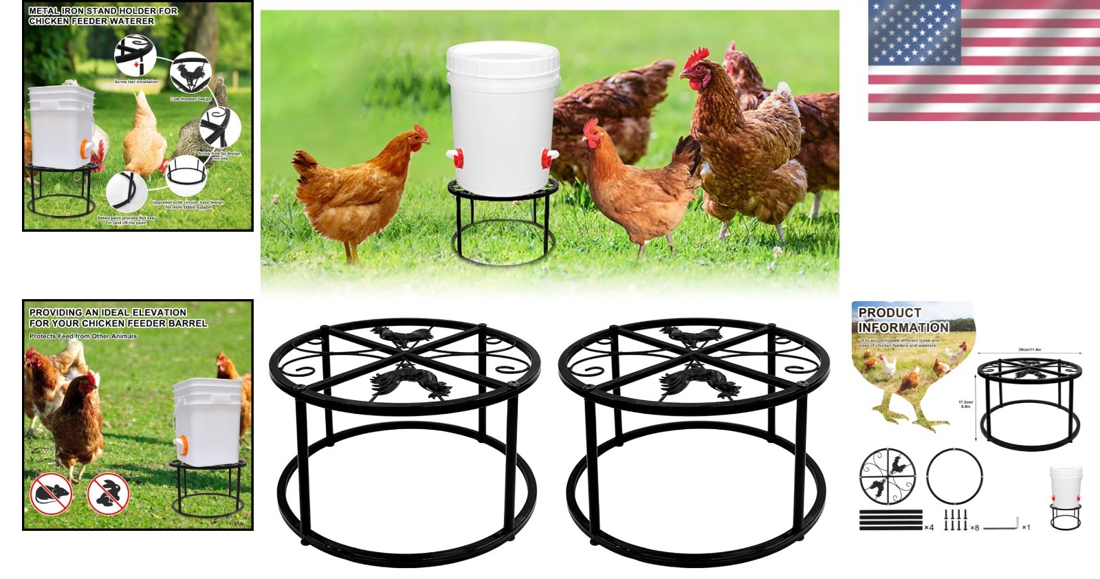 2-Pack Heavy Duty Metal Stand for Chicken Feeders Waterers - Stylish Sturdy