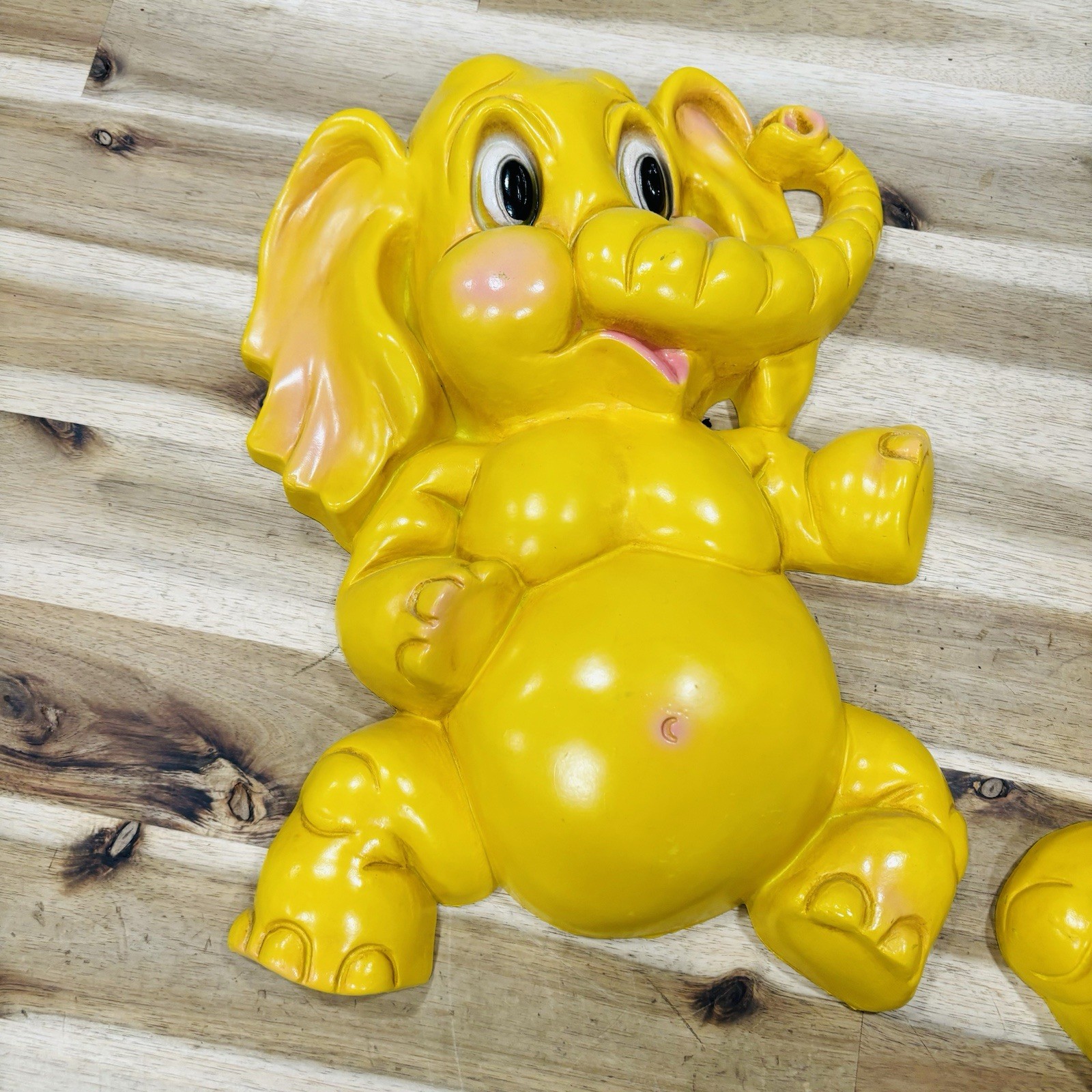 как выглядит HOMCO 2 Vintage 70s Yellow Baby Elephant Wall Hanging Decor Kids Room Retro фото