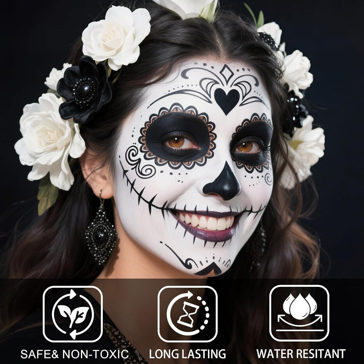 Dual-Ended Face Body Paint Stick - Black White Cream-Blendable for Halloween,