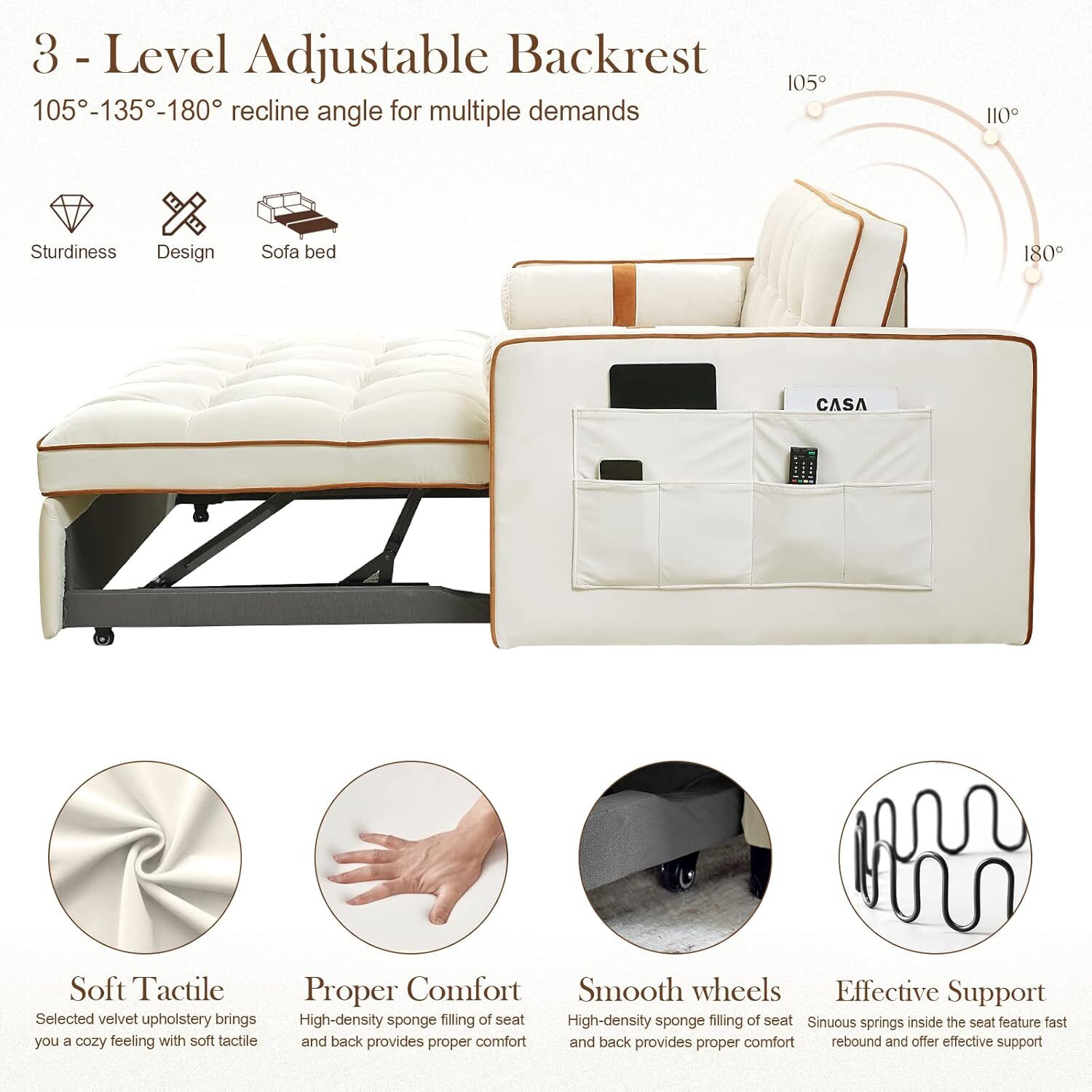 3 in 1 Convertible Pull-Out Sofa Bed Sleeper Loveseats with Cylinder Pillows