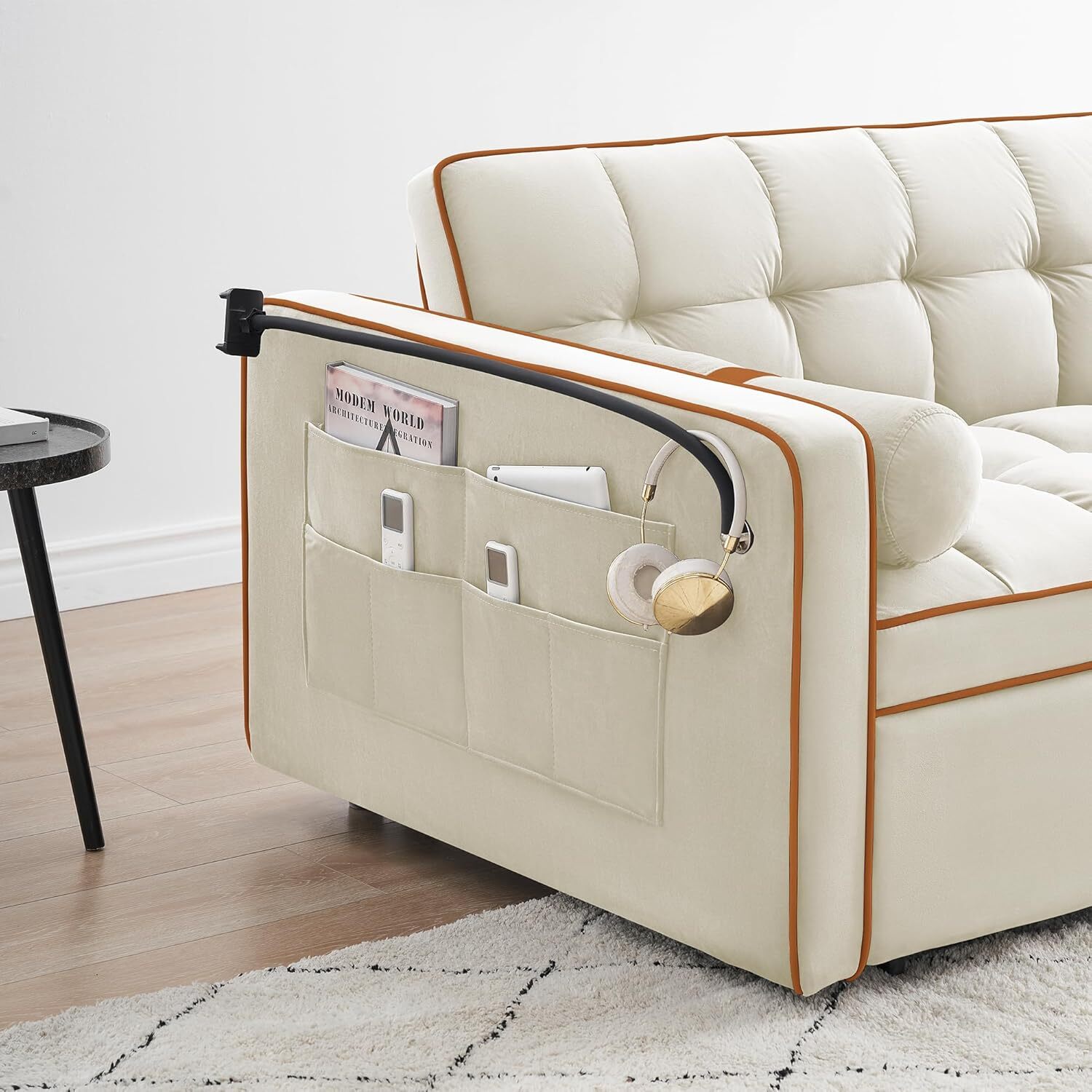 3 in 1 Convertible Pull-Out Sofa Bed Sleeper Loveseat with Phone Stand Pillow