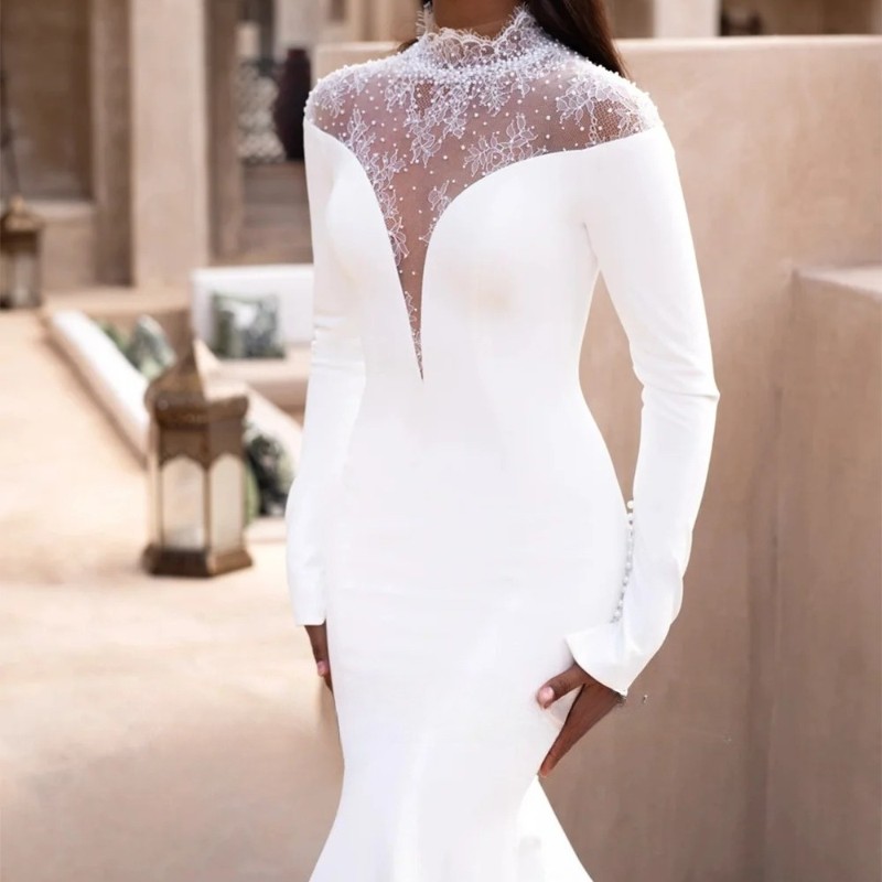 как выглядит Arabian Wedding Dresses Mermaid High Neck Top Lace Sweep Train Bridal Gowns фото