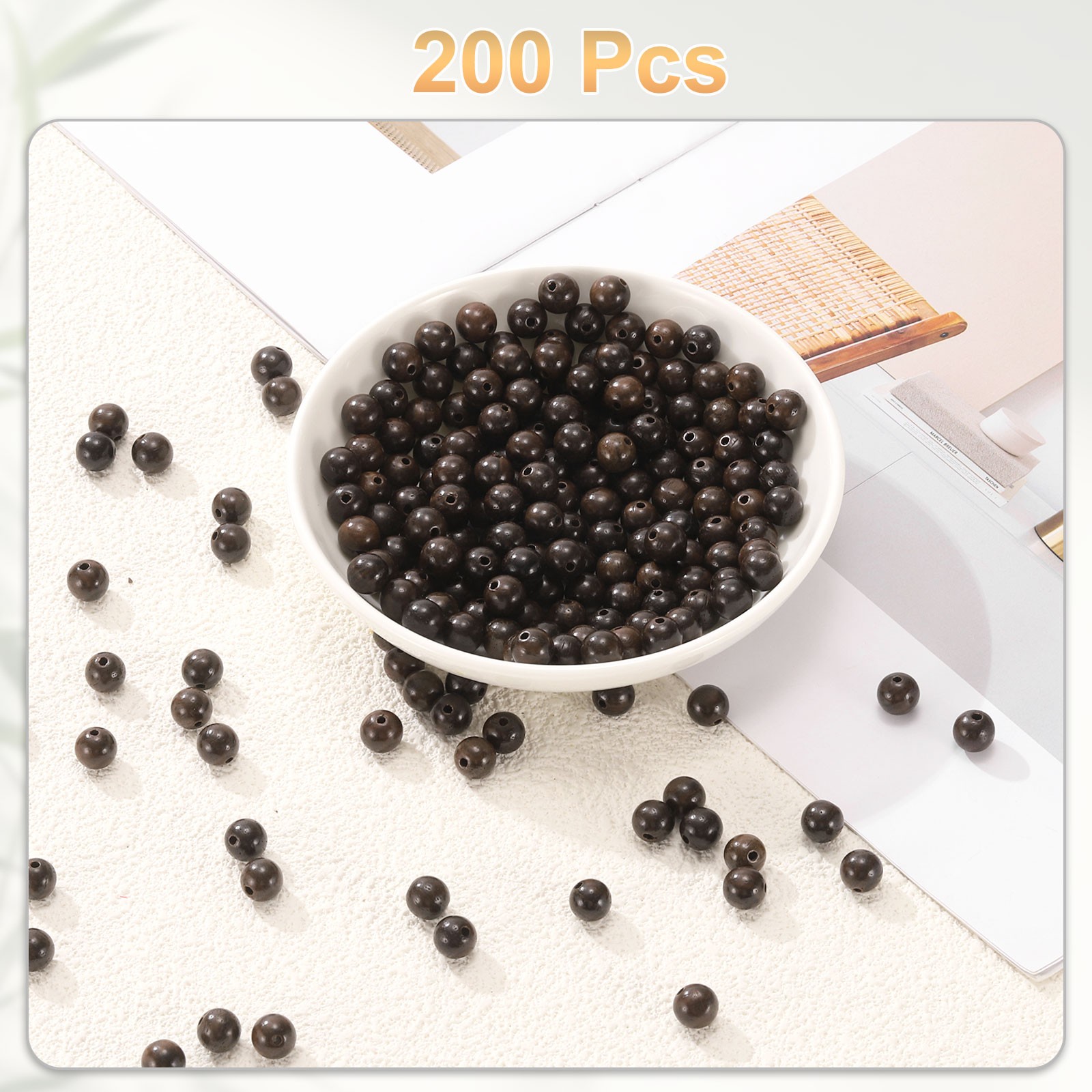 200pcs 8mm Grey Timber Round Polished Wooden Loose Beads for Craft