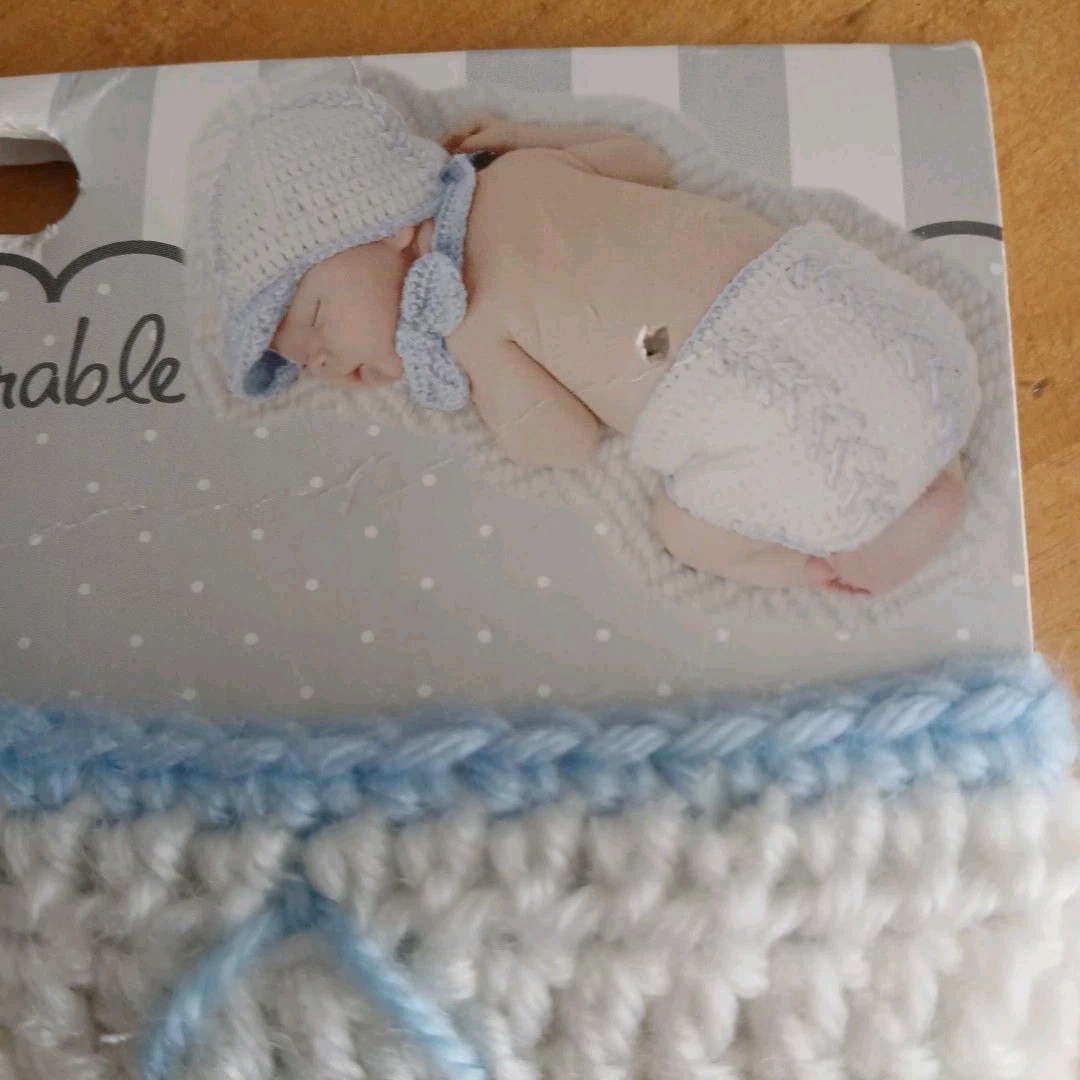 как выглядит So Dorable Hand Crocheted Diaper Cover 0-6 M White/Blue NWT фото
