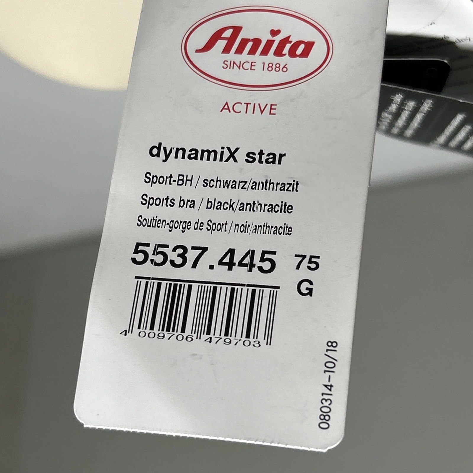 как выглядит Anita Active Dynamix Star 34G Sport Bra Black Wireless Unpadded Back Coverage фото