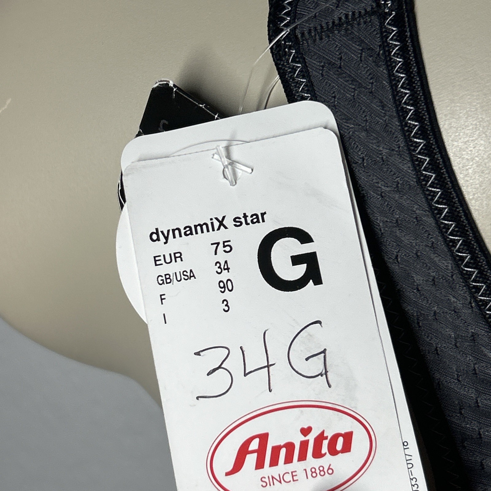 Anita Active Dynamix Star 34G Sport Bra Black Wireless Unpadded Back Coverage