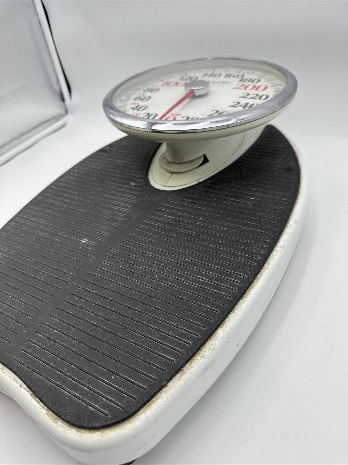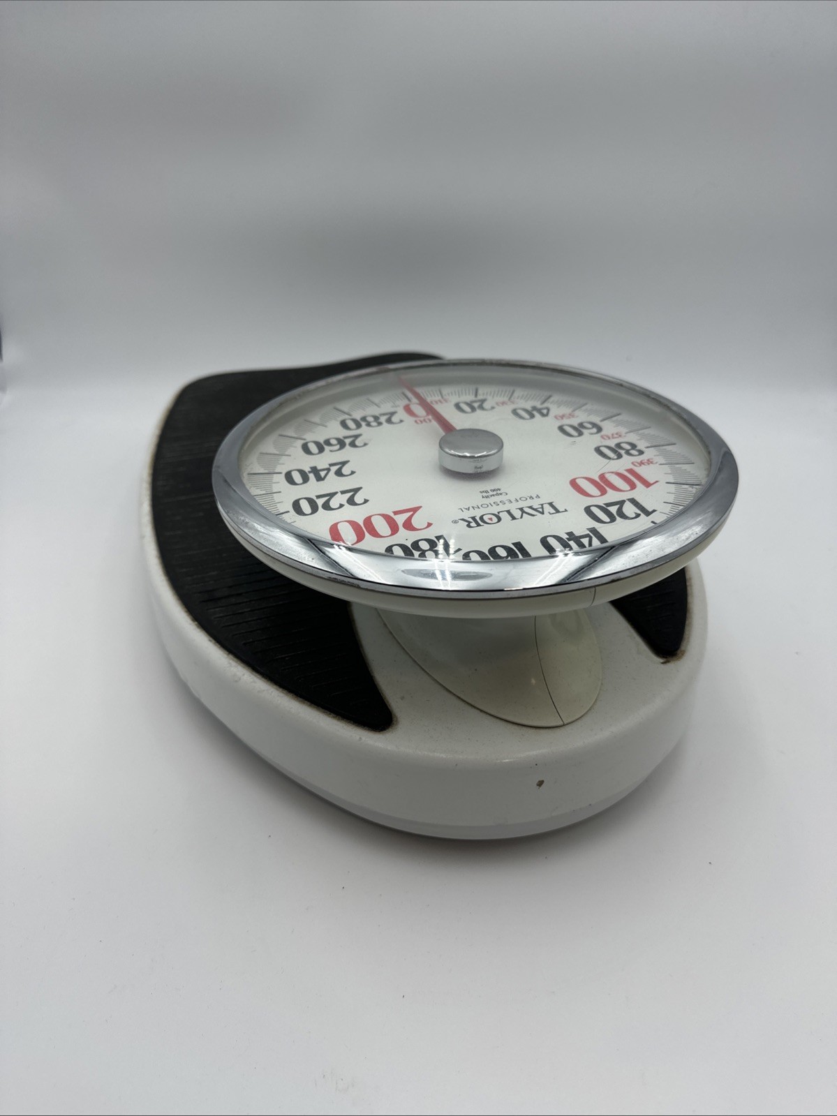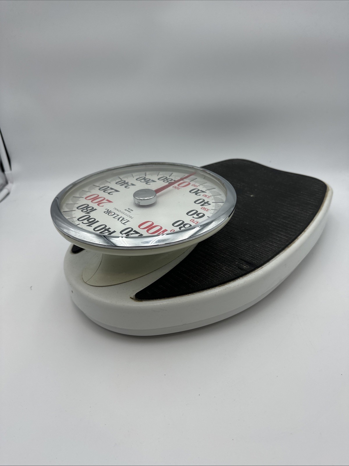 Vintage TAYLOR BATHROOM SCALE PROFESSIONAL 400 LB. white large dial 9in