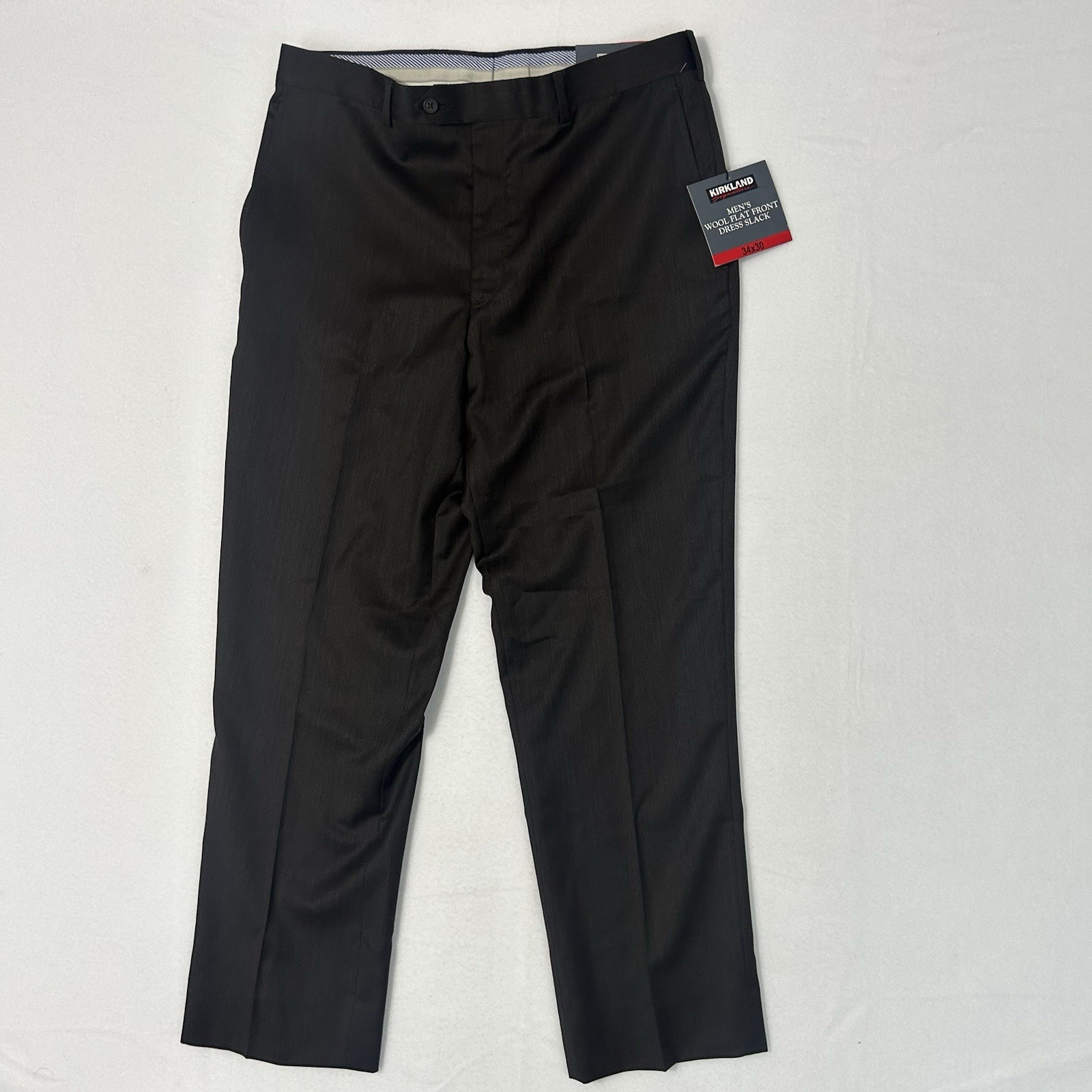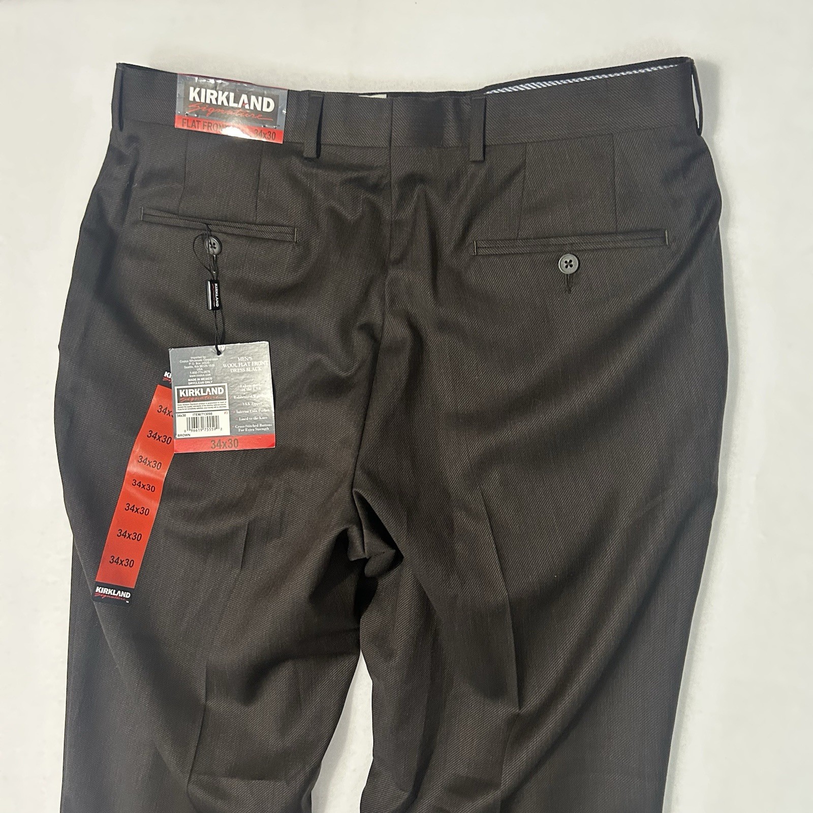 NWT Kirkland Dress Pants 34x30 Brown Herringbone Wool Flat Front Men s Trousers
