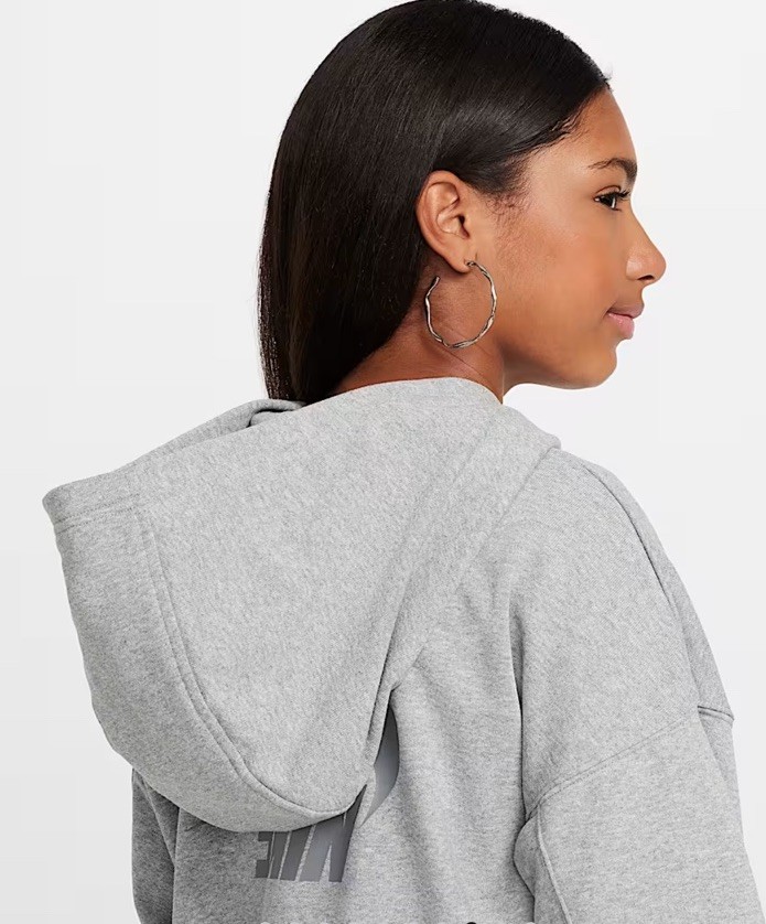 как выглядит NIKE Sportswear Big Girls Dri-FIT Oversized Fleece Hoodie Grey Heather Small фото