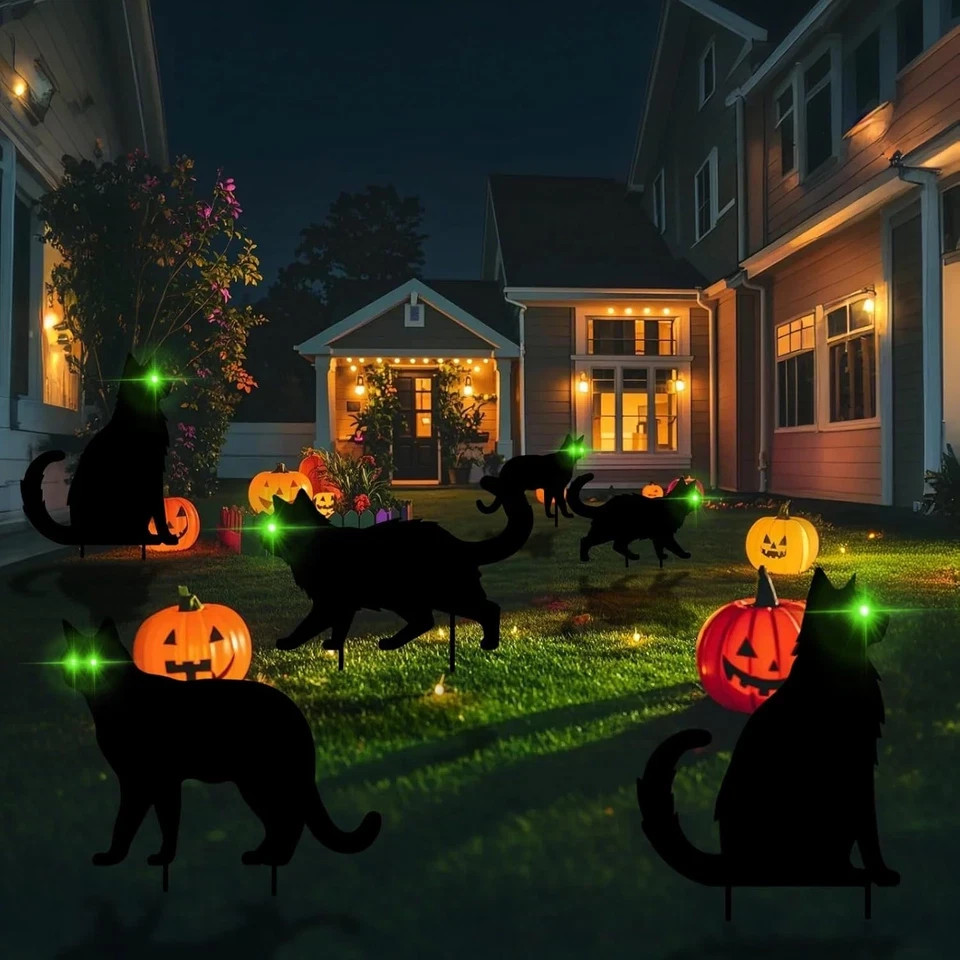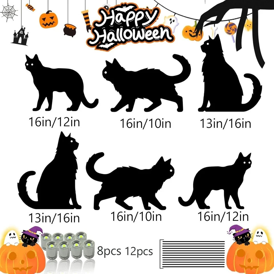 как выглядит Halloween Yard Signs Decorations Black Cat Glow in Dark Outdoor Decor, Scary Sil фото