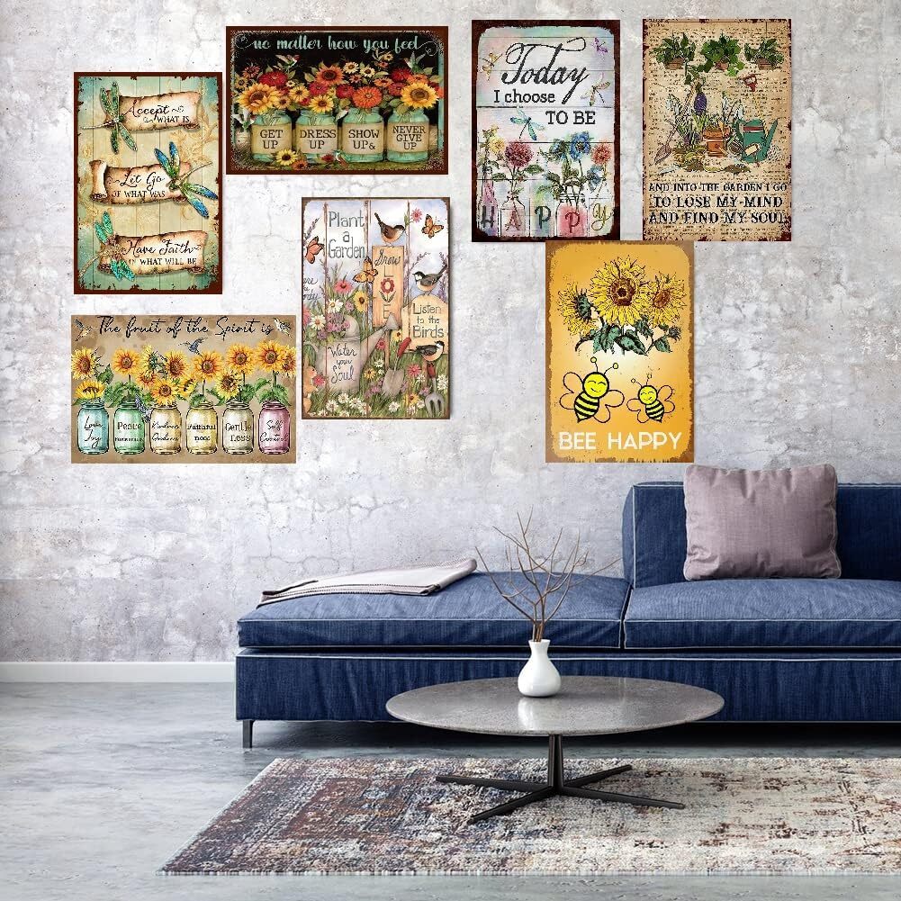 Funny Flowers Birds Metal Sign, Metal Country Rustic Tin Sign, Plant a Garden Wa