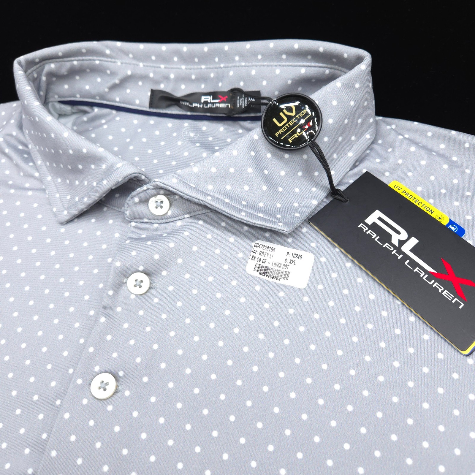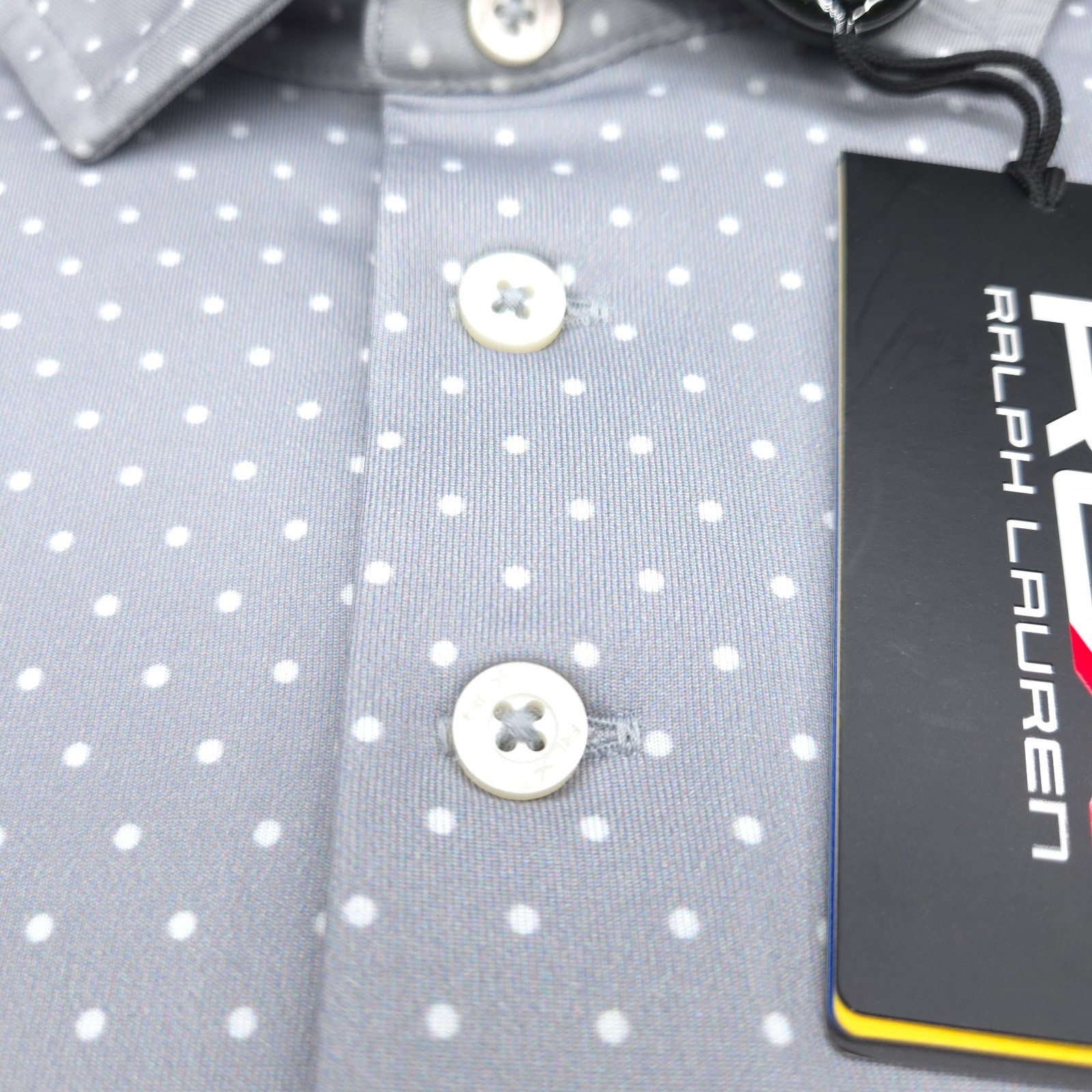 как выглядит RLX Ralph Lauren Polo GOLF Shirt -XXL- Silver Gray White DOT Performance STRETCH фото