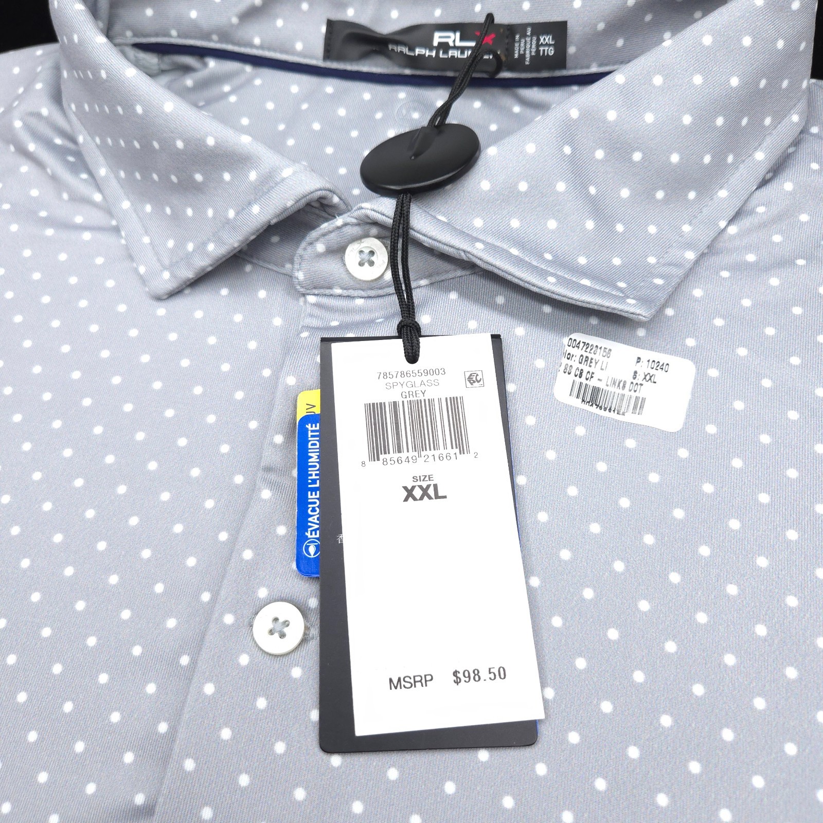 RLX Ralph Lauren Polo GOLF Shirt -XXL- Silver Gray White DOT Performance STRETCH