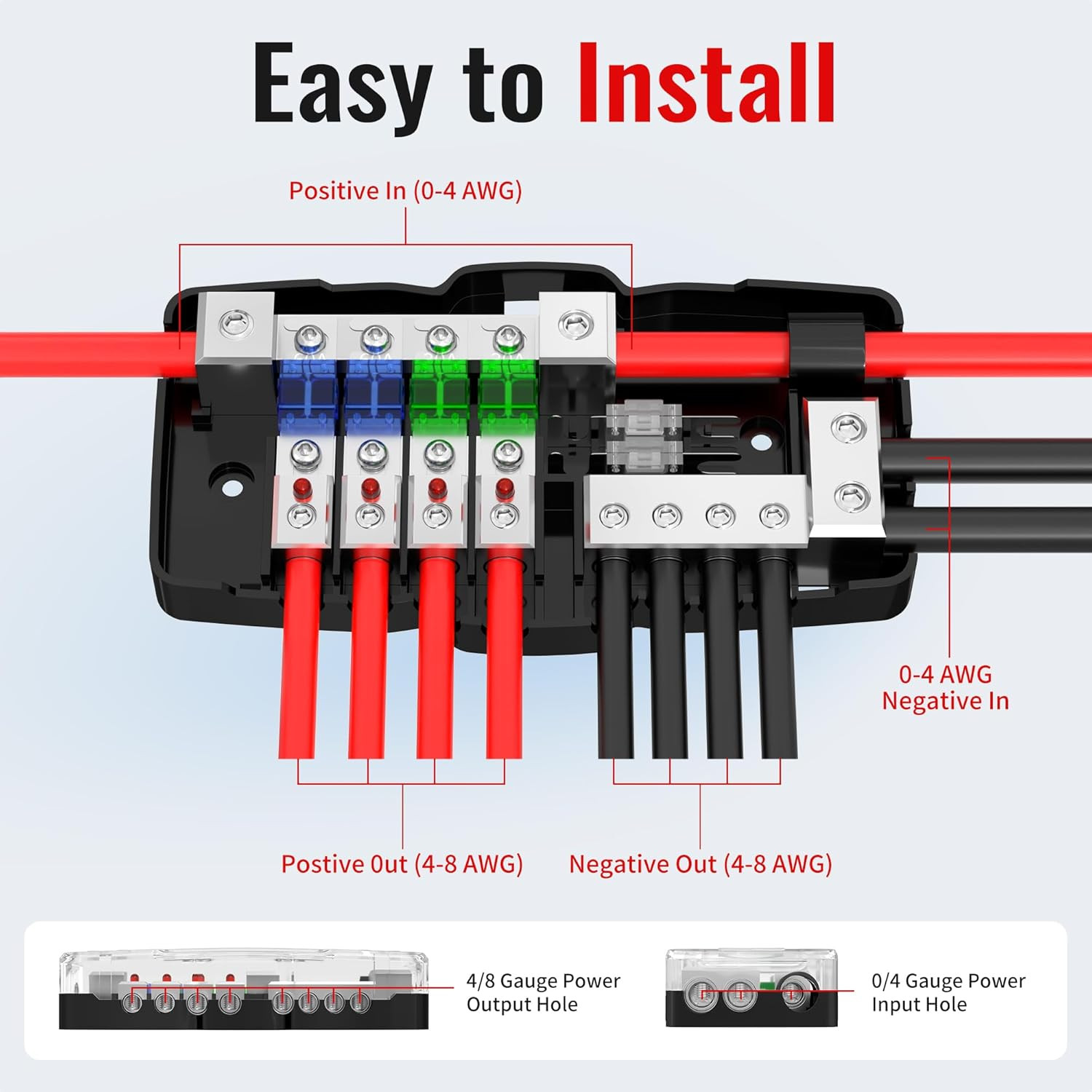 Fused Power Distribution Block Car Audio 4 Way Midi Mini-Anl Fuse Block 12V 0/4