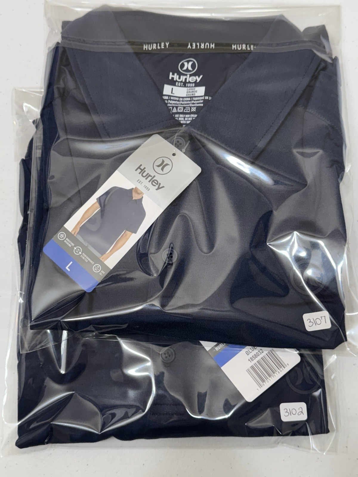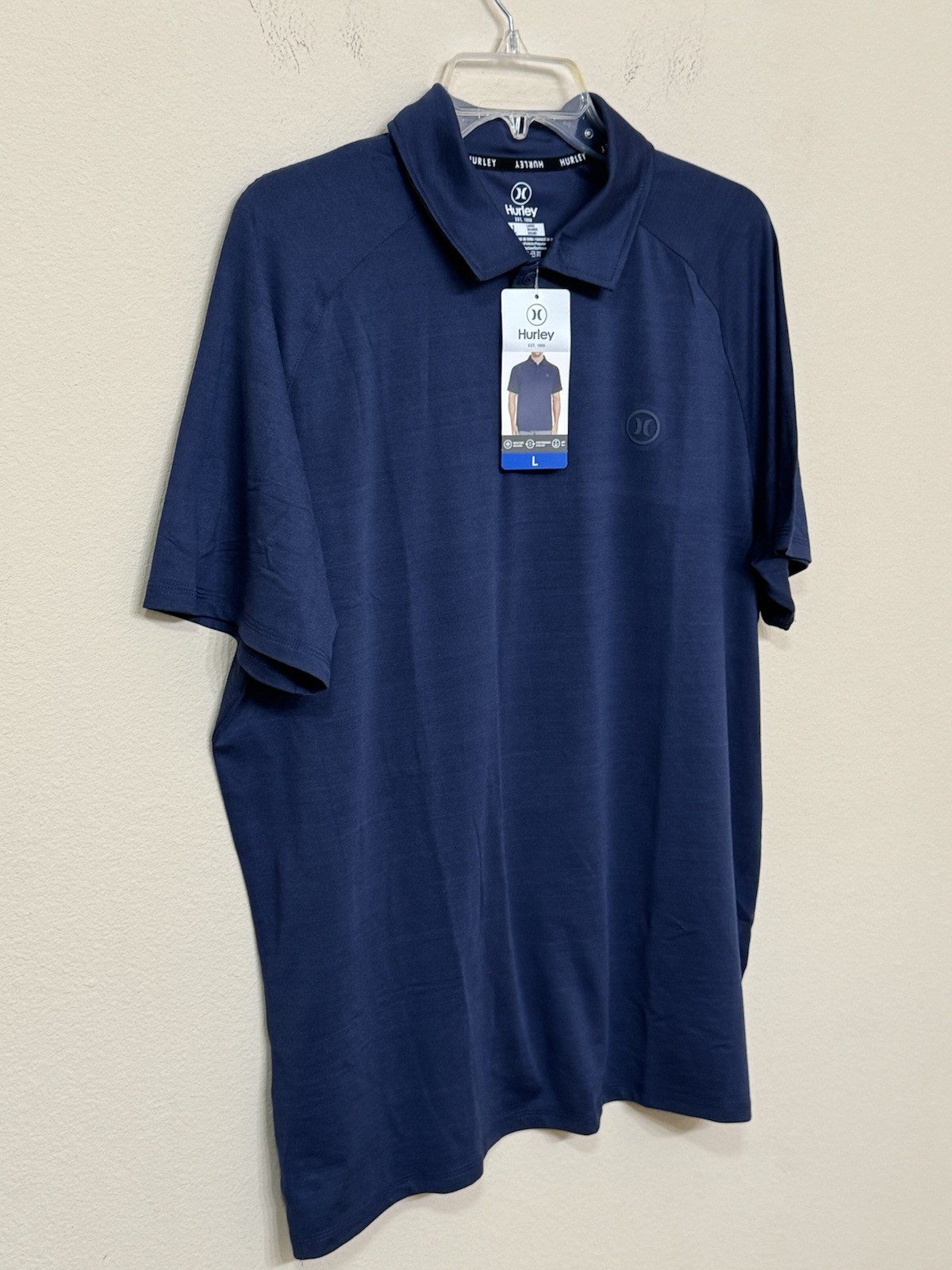 Hurley Men s Blue Short Sleeve Collared Stretch Comfort Lightweight Polo Shirt L
