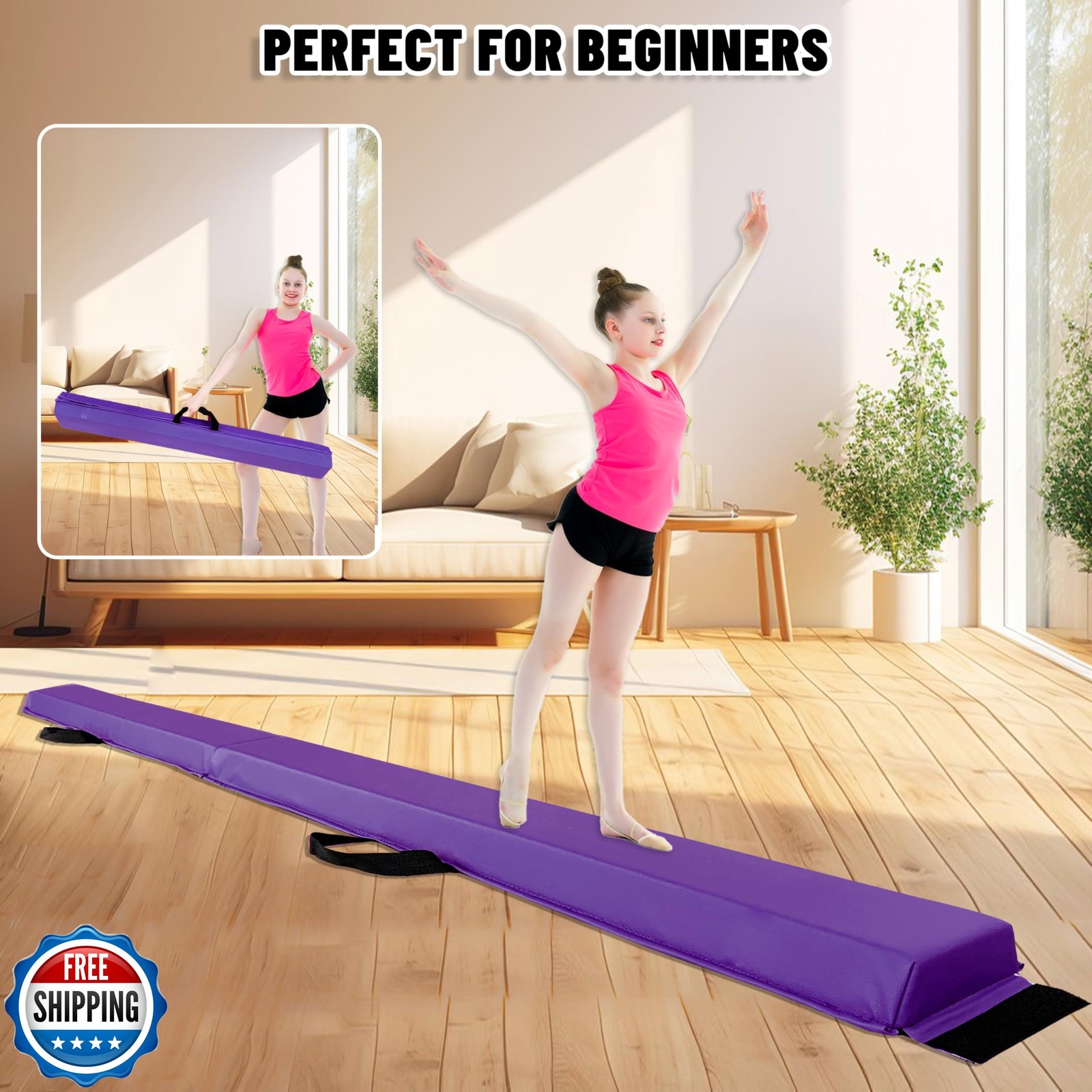 MARFULA 6 FT / 8 FT / 9 FT / 10 FT Folding Gymnastic Balance Beam for Kids wi