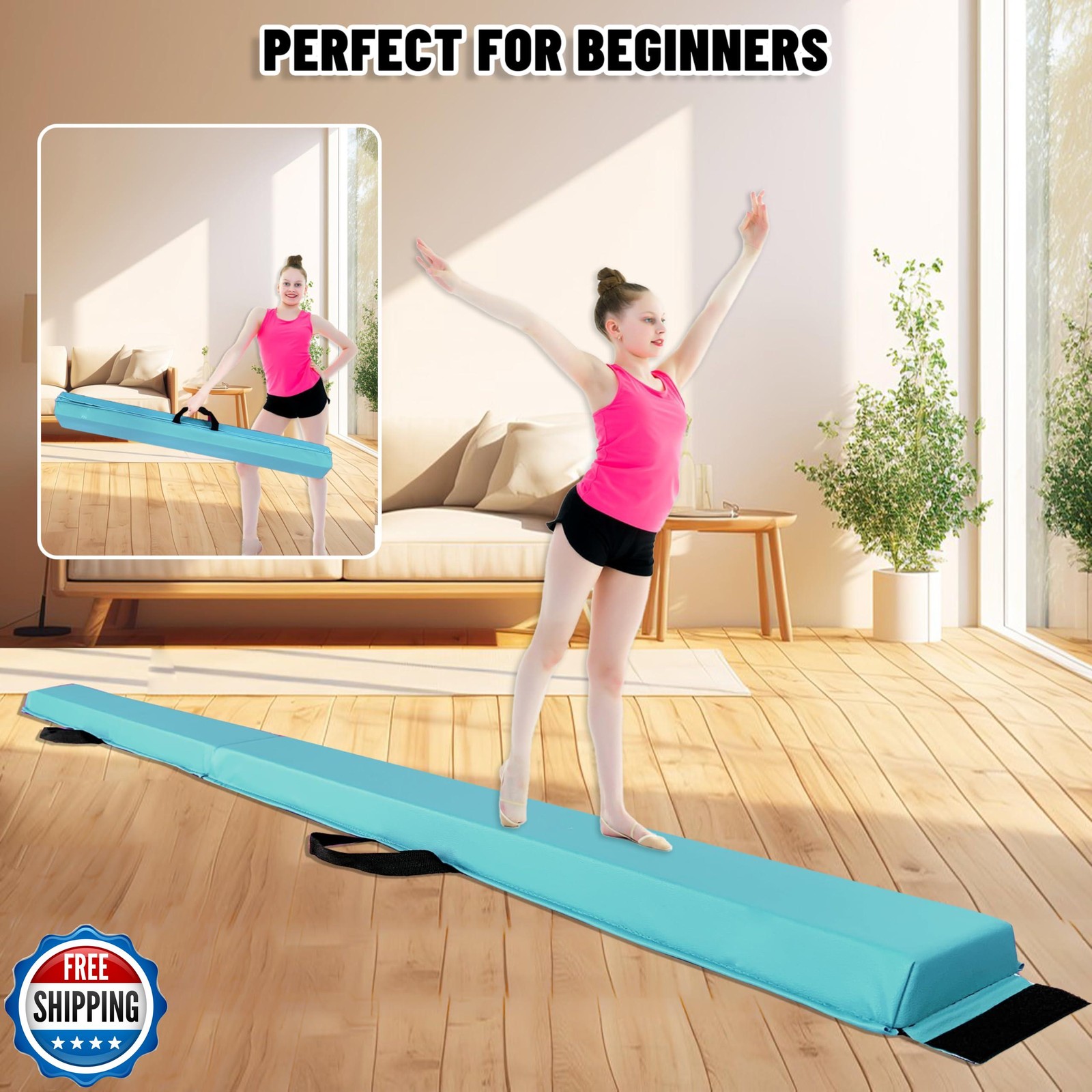 MARFULA 6 FT / 8 FT / 9 FT / 10 FT Folding Gymnastic Balance Beam for Kids wi