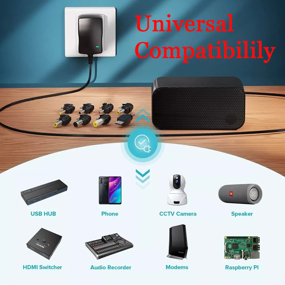 Universal AC Adapter Power Supply Wall Charger Cord for DC Charger 12W 3V-12V US