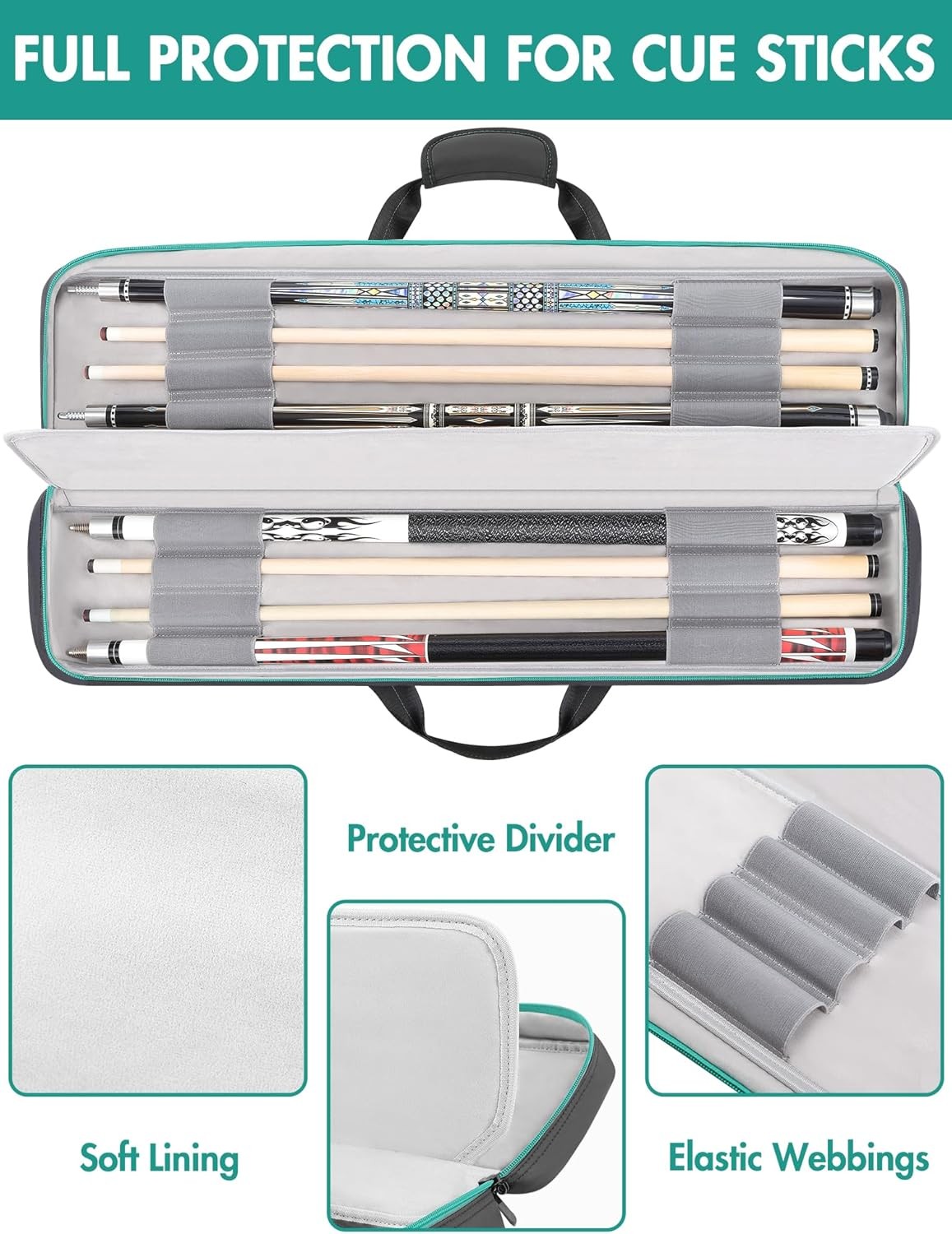 Pool Cue Case, Pool Stick Case 4X5 with Multiple Pockets Holds 4 Butts 5 Shafts