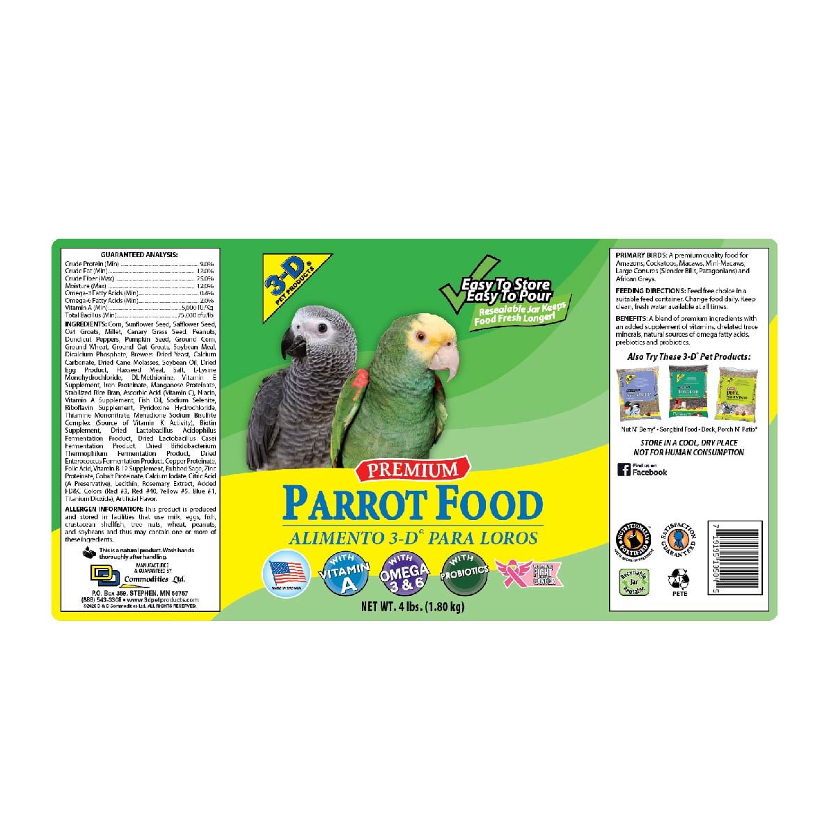 3-D Pet Products Premium Parrot Bird Food, Seeds, 4 lb. Jar