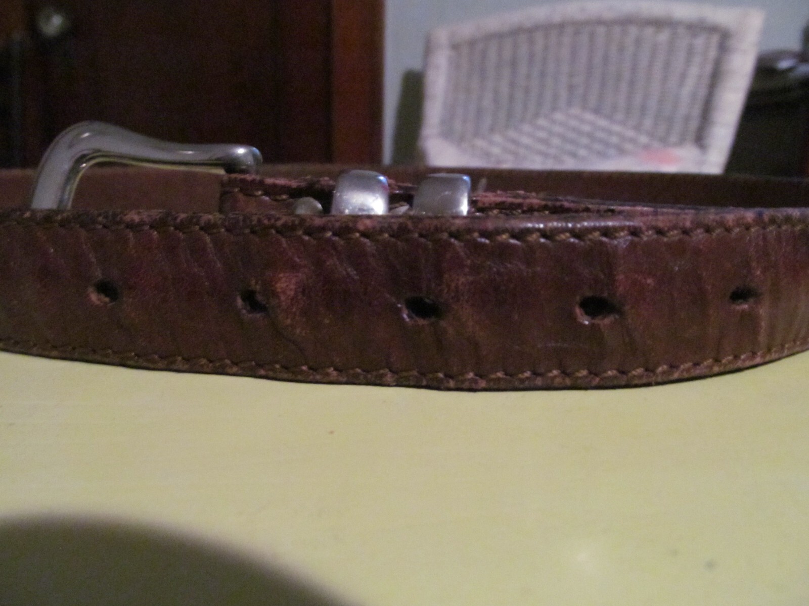 Amanda Ladies Leather Belt w/ Two-Tone Metal Inlay, Chrome Plated Brass Size 33