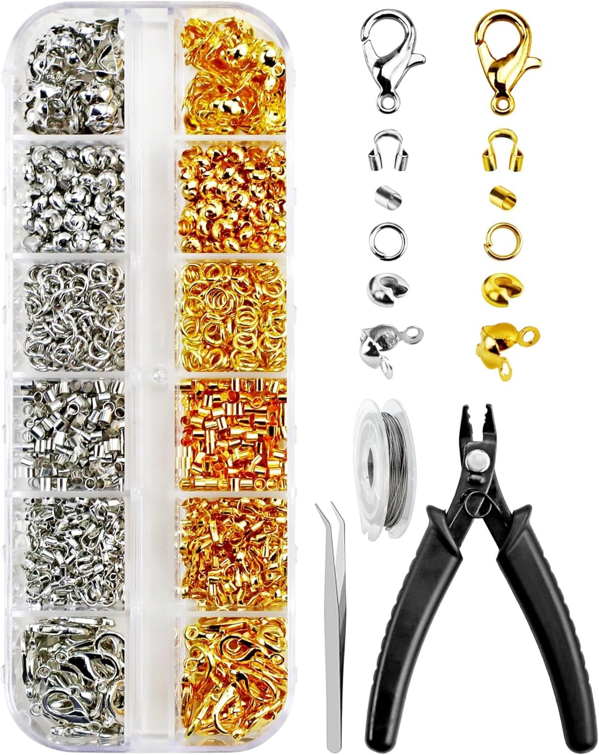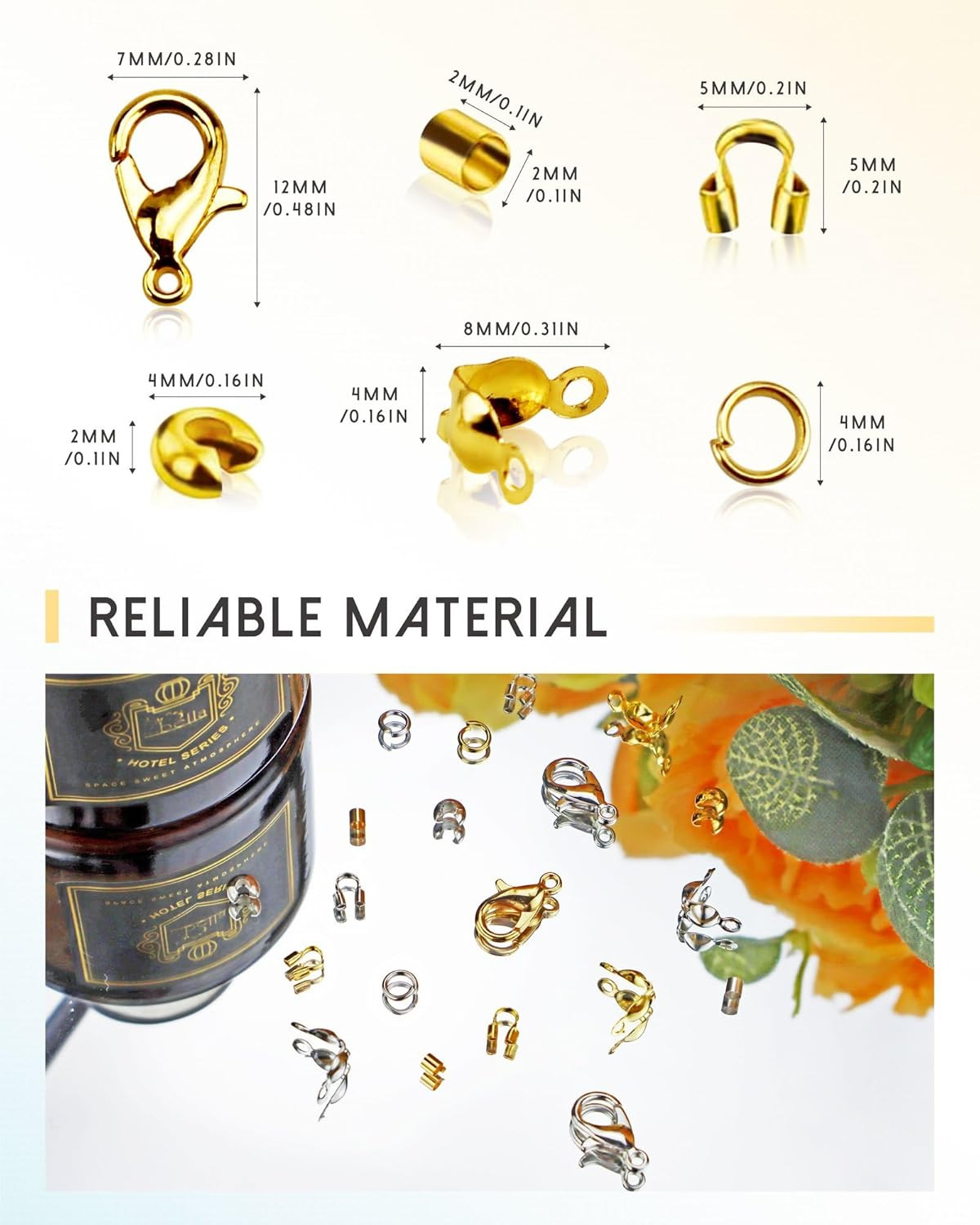 1200 Pcs Crimp Beads Kit for Jewelry Making, Including Crimp Beads, Covers, Tube