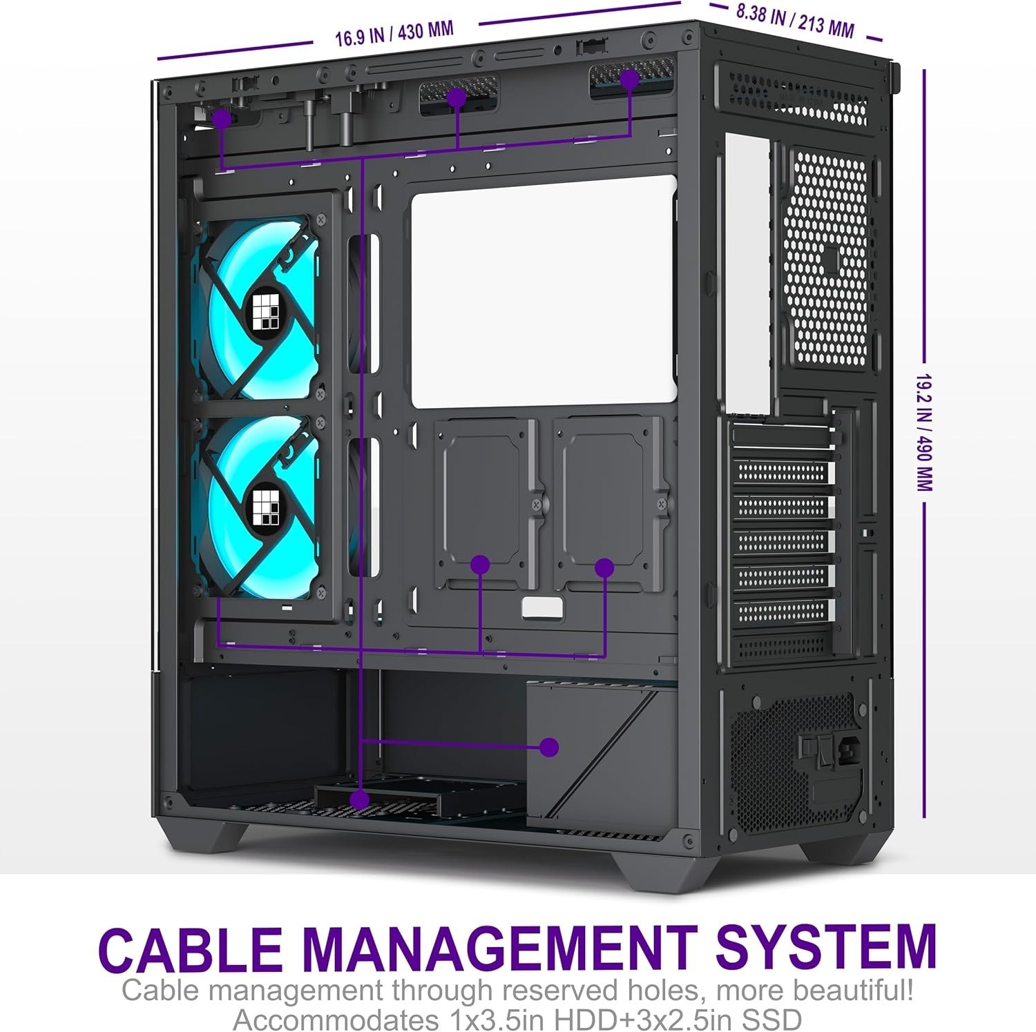 F1 Mid-Tower Case: 6 PWM ARGB Fans, Type-C, Dust Filter, Black Design