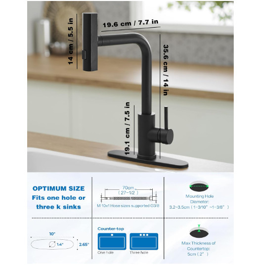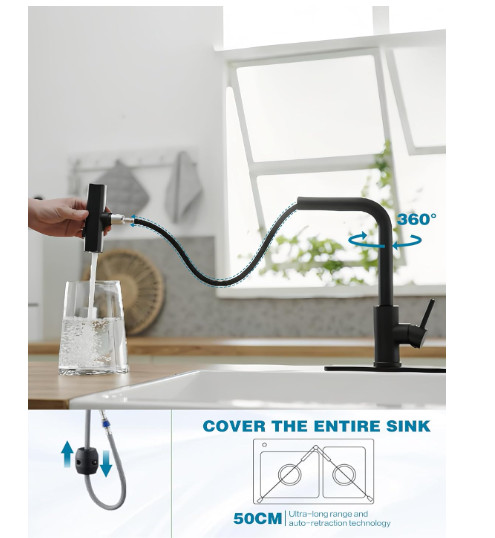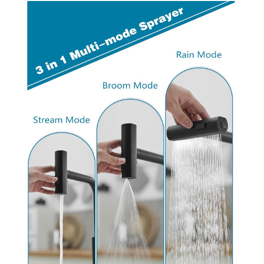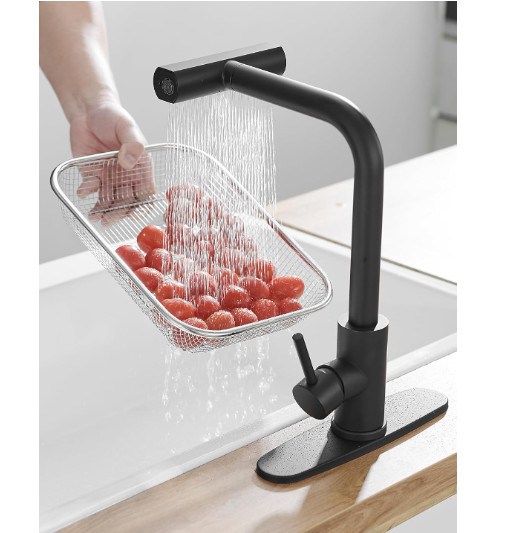Grifo de cocina negro tipo cascada con rociador extra ble 3 funciones, monomando